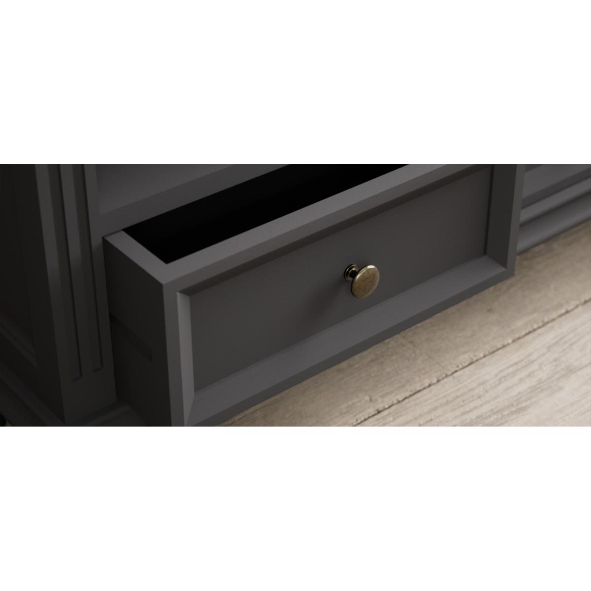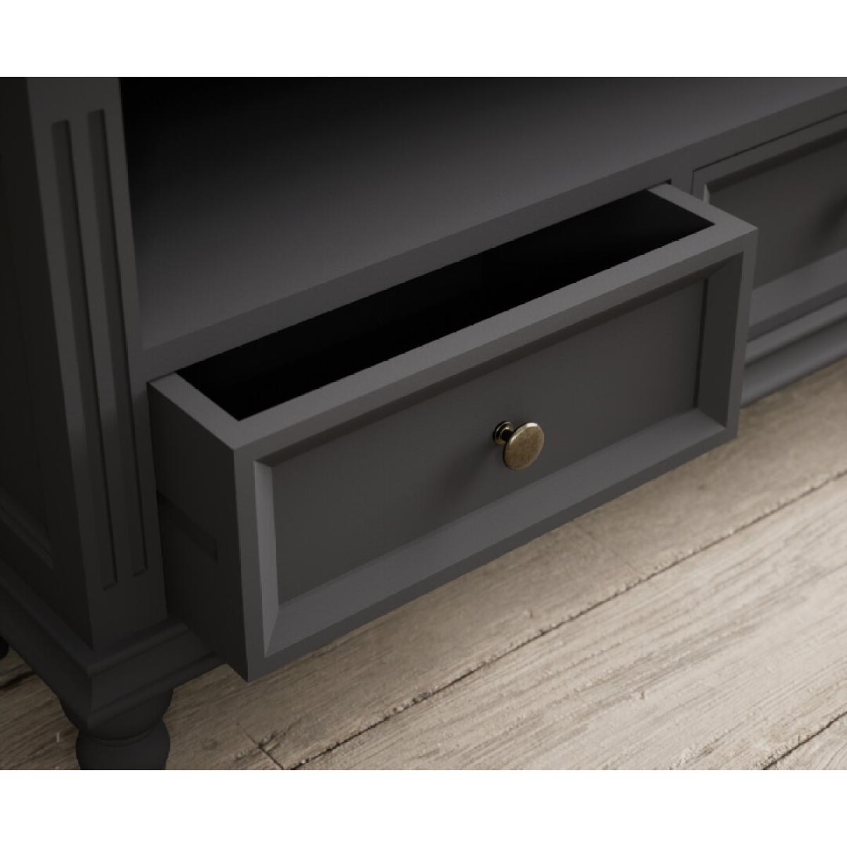 I’m a fan of this corner TV unit for its smart mix of warm oak and deep charcoal paint - it brings contrast without overwhelming a room. Its compact footprint suits smaller living areas or snug media corners, and the turned legs plus moulded drawer fronts add just enough character for both contemporary and classic schemes. To style, tuck a slim soundbar or streaming box in the open shelf and hide games or cables in the drawers. On top, a couple of low-profile plants or a pair of matching ceramic vases will keep sightlines clear for your screen. As the finish is a versatile neutral, it sits equally well against sage-green walls, soft greys or even a crisp white backdrop.