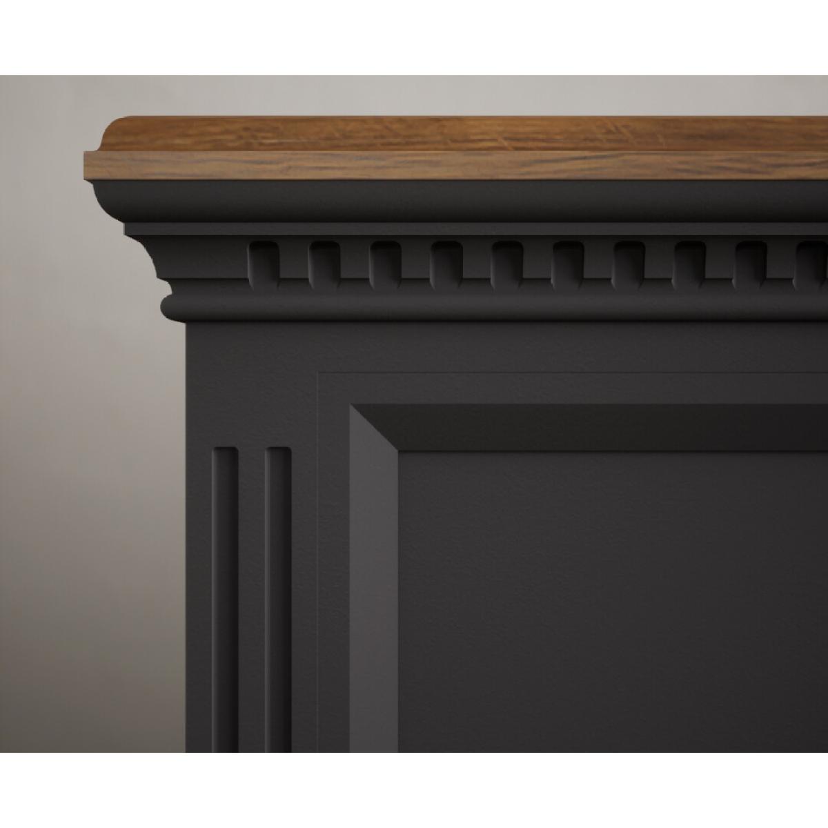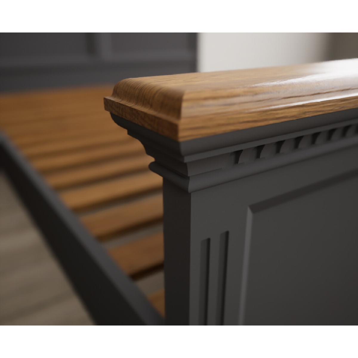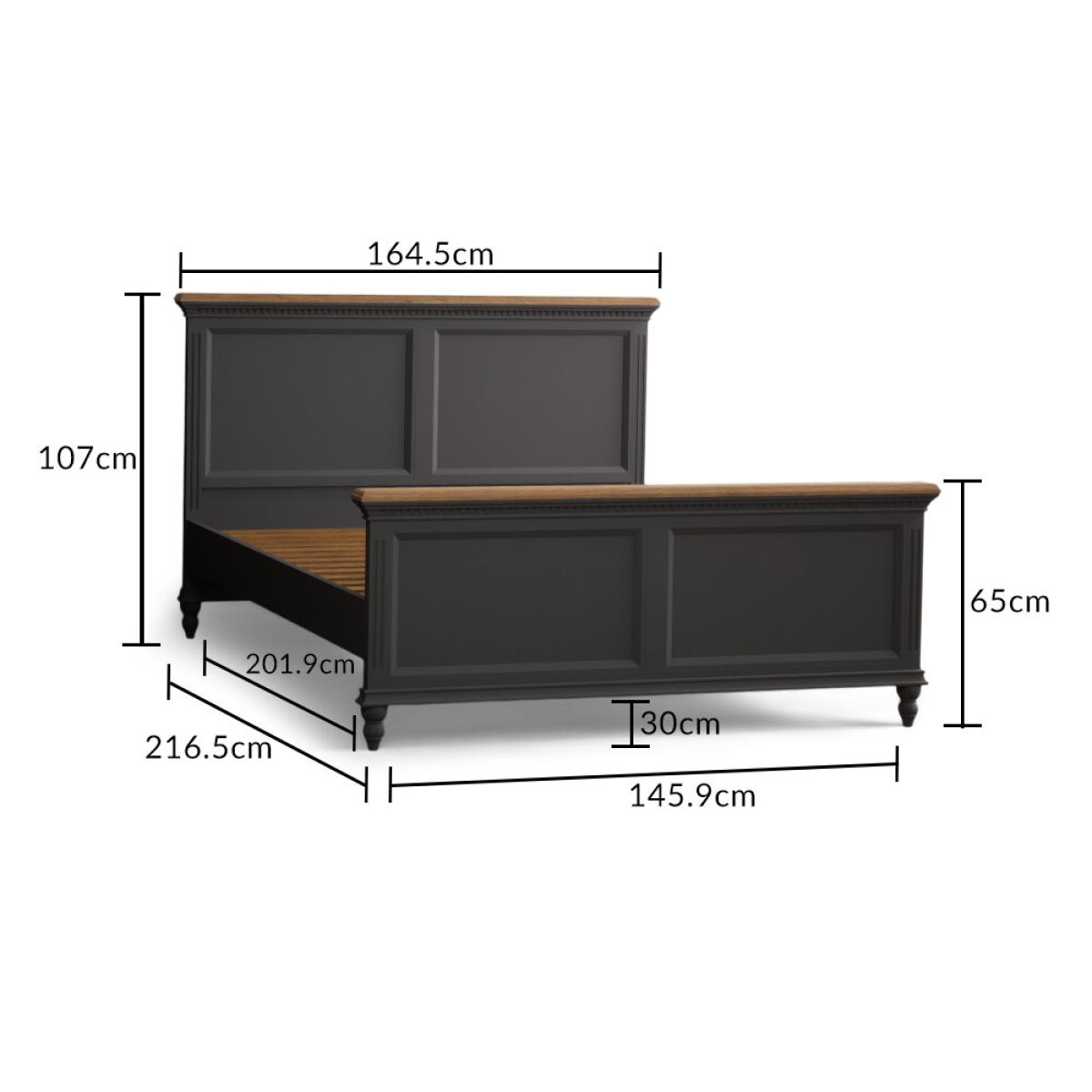 The Francis Oak and Charcoal Grey Painted King Size Bed features a charcoal grey-painted solid hardwood frame with a paneled design, solid oak tops and solid wood slats.