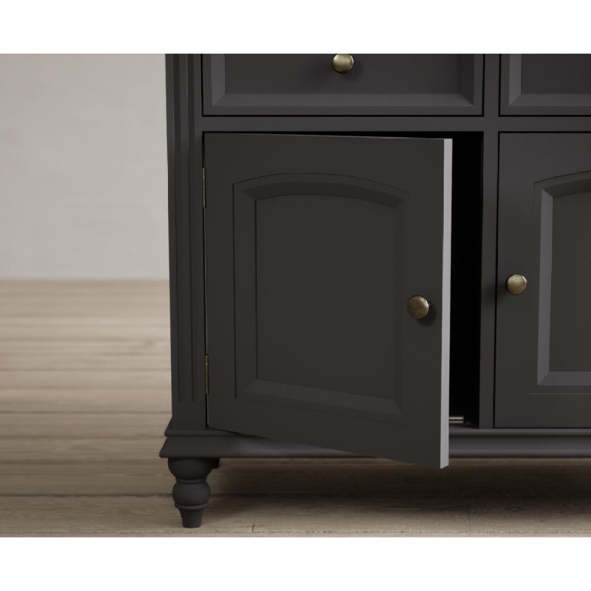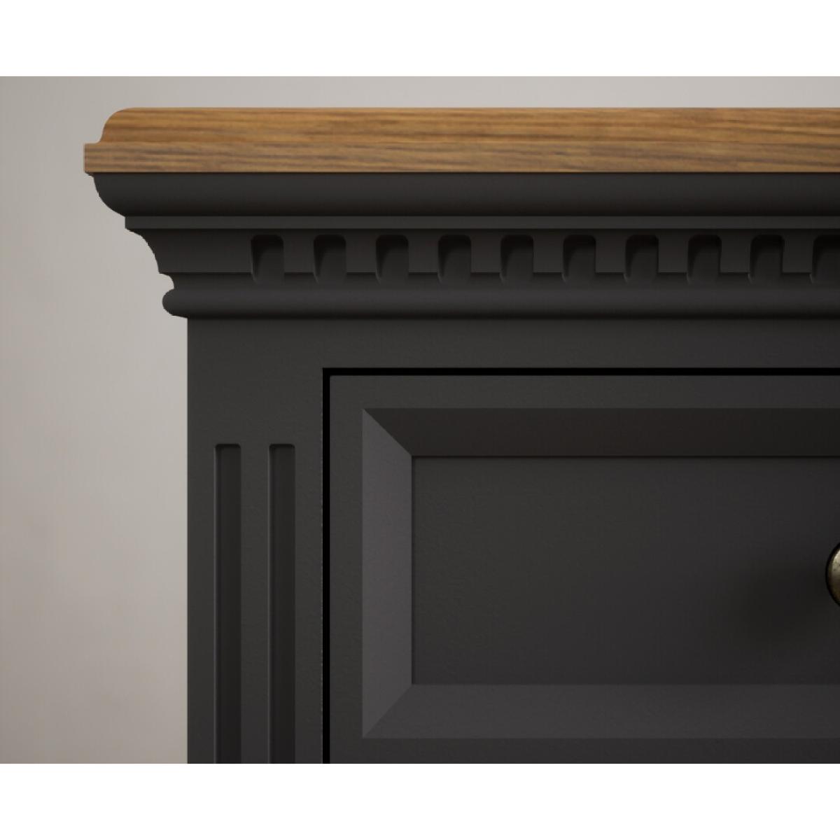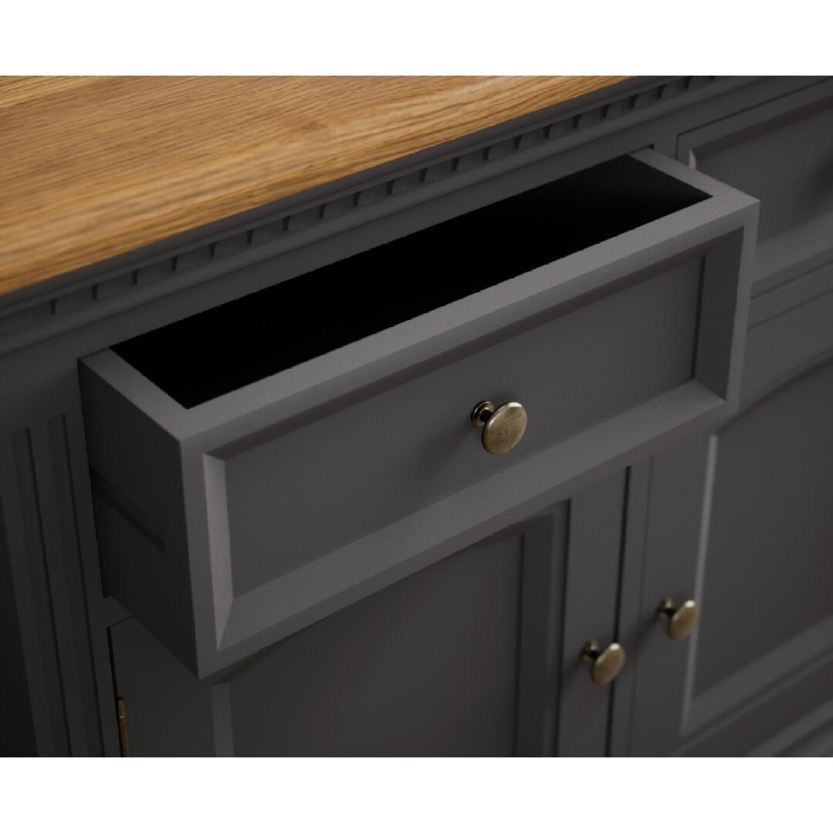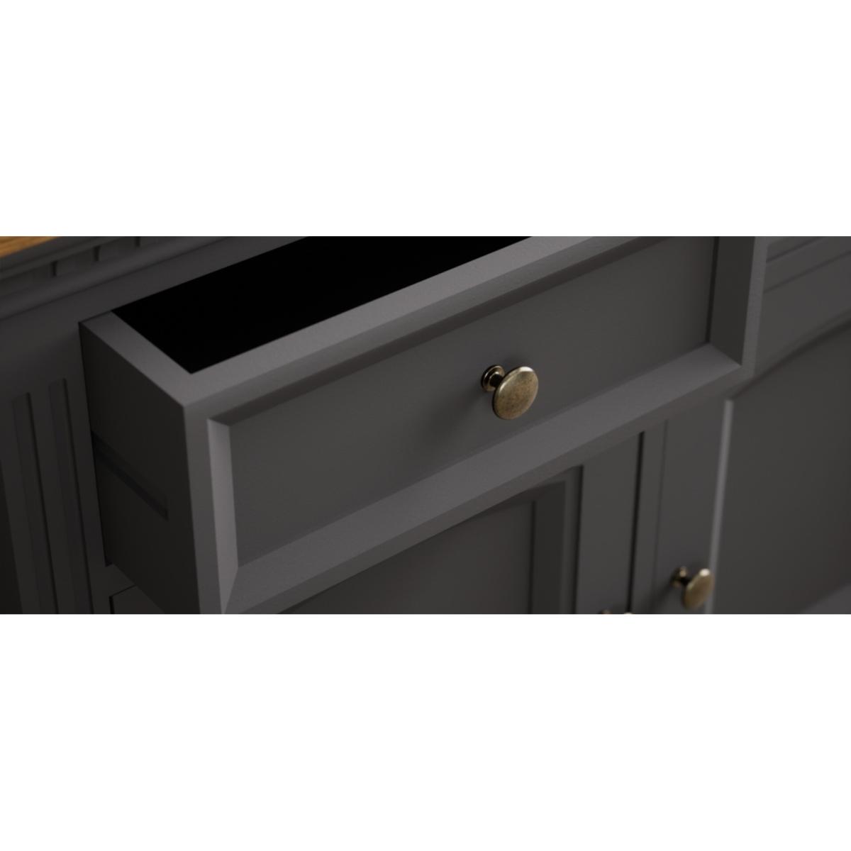 The Francis Oak and Charcoal Grey Painted Small Sideboard features a grey painted solid hardwood frame and whitewashed 100% solid oak top, with two Dovetail drawers and cupboard.
