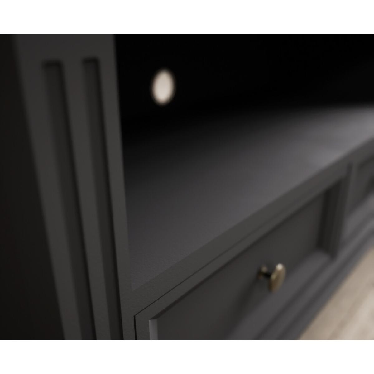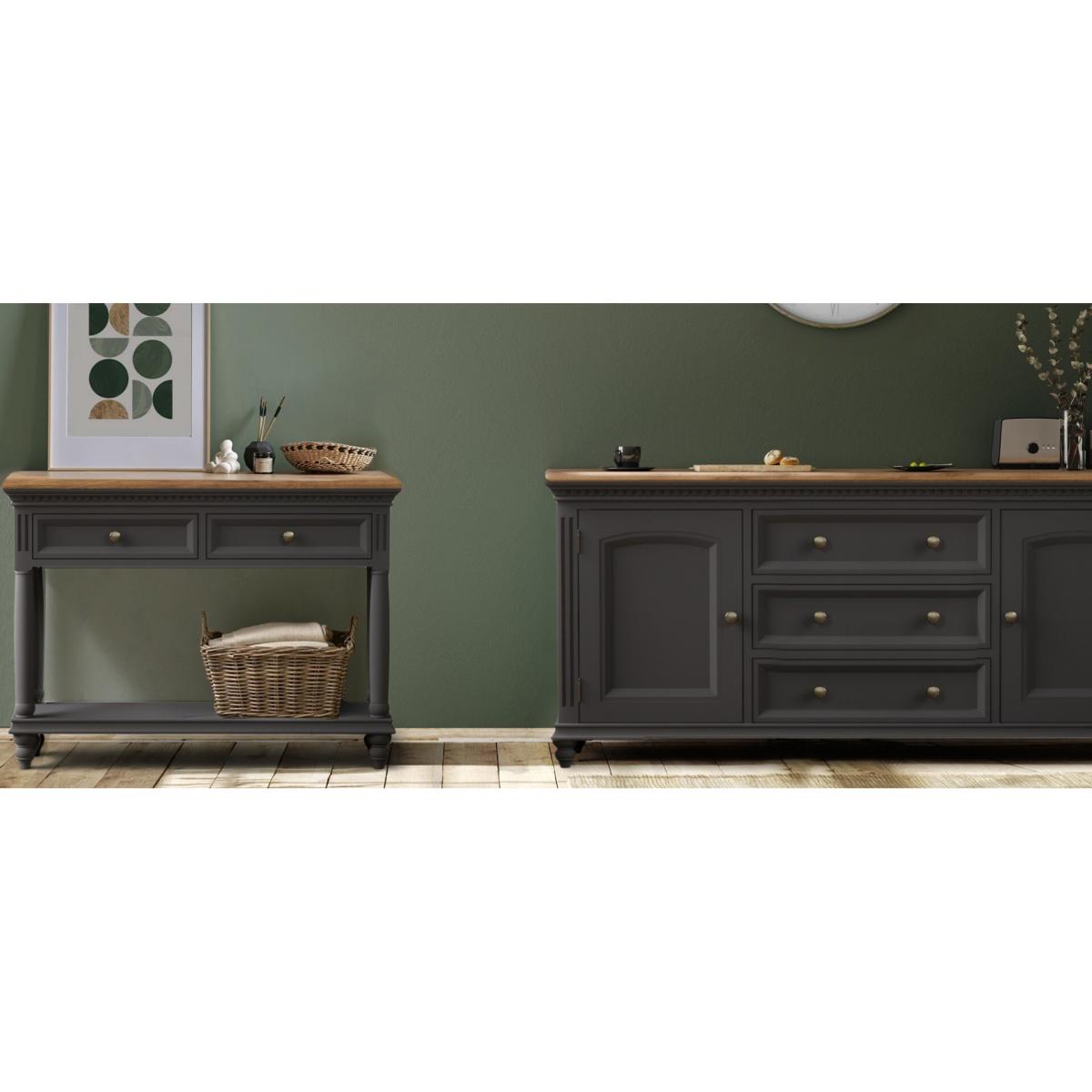 I really rate the Francis TV cabinet for its mix of solid oak and charcoal paint - it adds warmth without feeling too rustic. It works equally well in modern farmhouses or pared-back Scandi schemes, and the turned legs give just enough classic detail to stop it looking too minimal. For styling, hide media boxes in the open shelf and use the drawers for remotes or cables. Top it with a slimline soundbar and a couple of low-profile accessories - a small plant or a stack of books - to keep the look uncluttered.