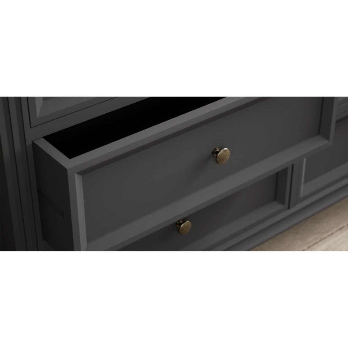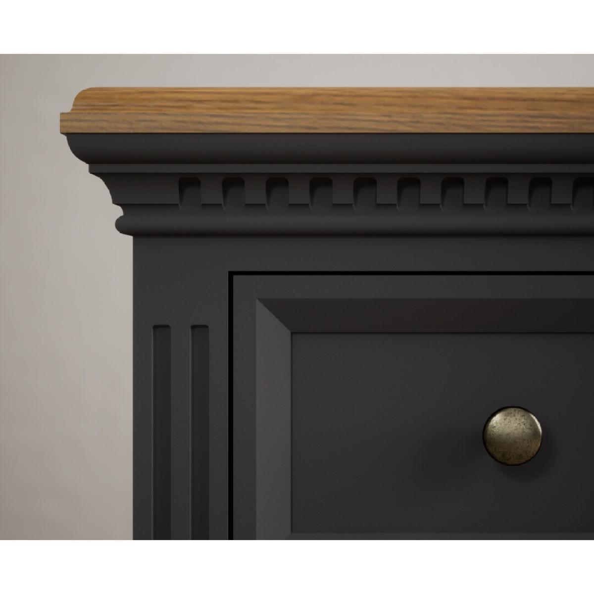 I love this oak-topped grey chest for its blend of classic proportions and modern finish - it brings warmth from the natural oak yet reads fresh in charcoal. It works equally well in a Scandi-inspired bedroom or a more traditional hallway, anchoring soft neutrals or bolder jewel-toned palettes. Styling tip: keep the top clutter-free with a sculptural lamp on one side, a low vase of greenery on the other, and a neat stack of books or a small tray for keys in between. Its generous drawers mean you can hide everyday clutter while still enjoying a beautifully tailored look.