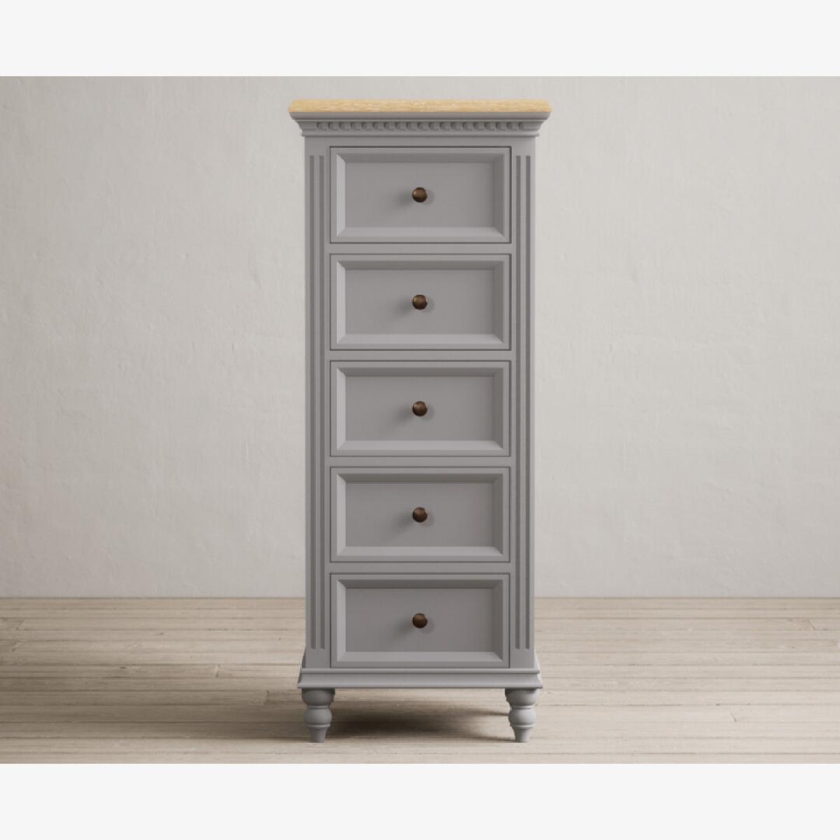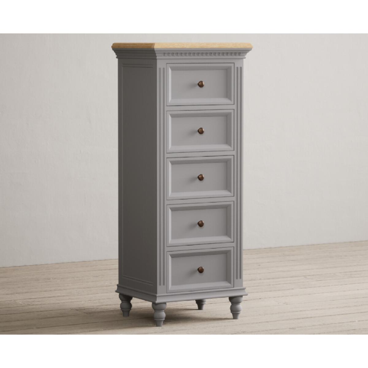 Francis Oak and Light Grey Painted 5 Drawer Tallboy