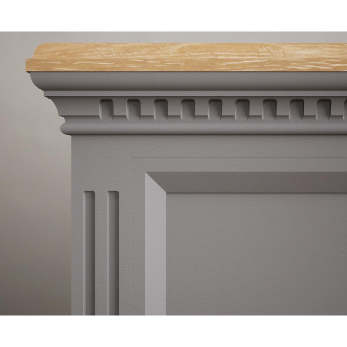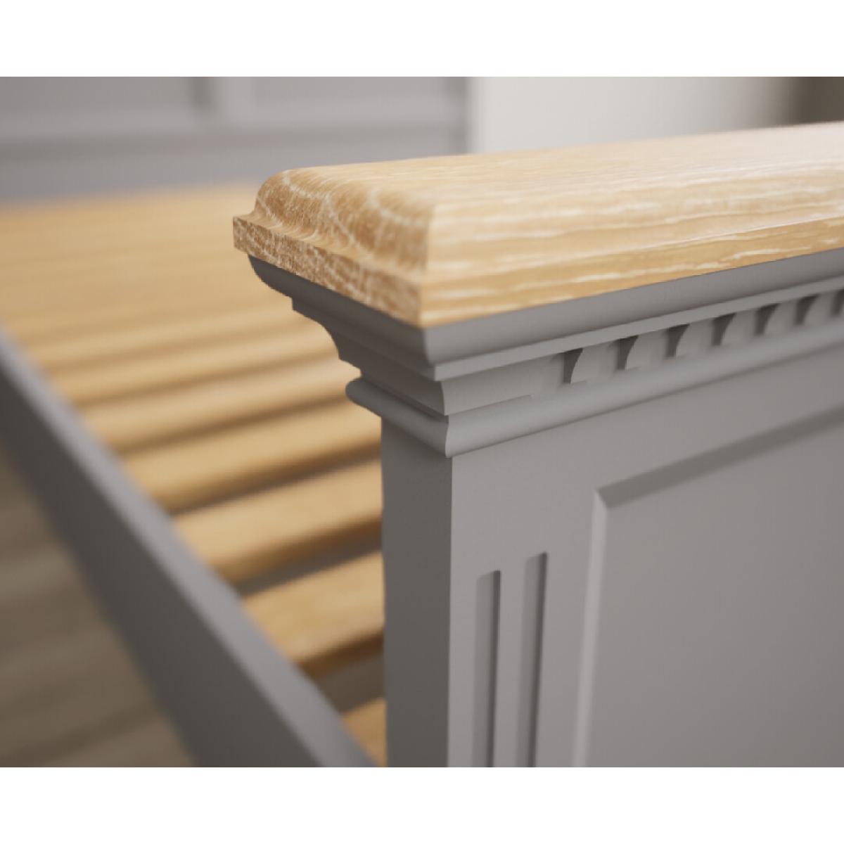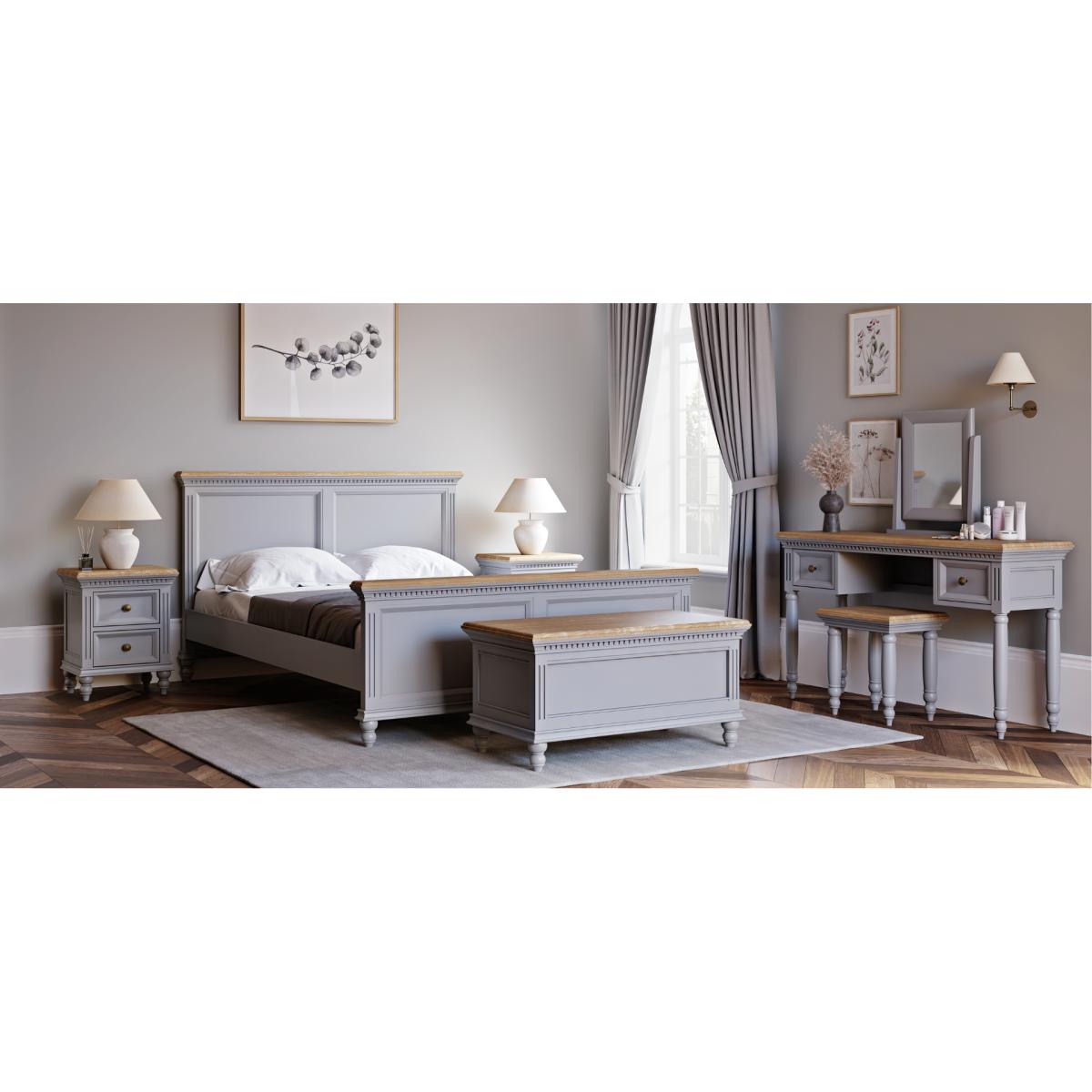 The Francis Light Grey Kingsize Bed features a grey painted solid hardwood frame with a panelled design, solid oak tops, intricate detailing and solid wood slats.