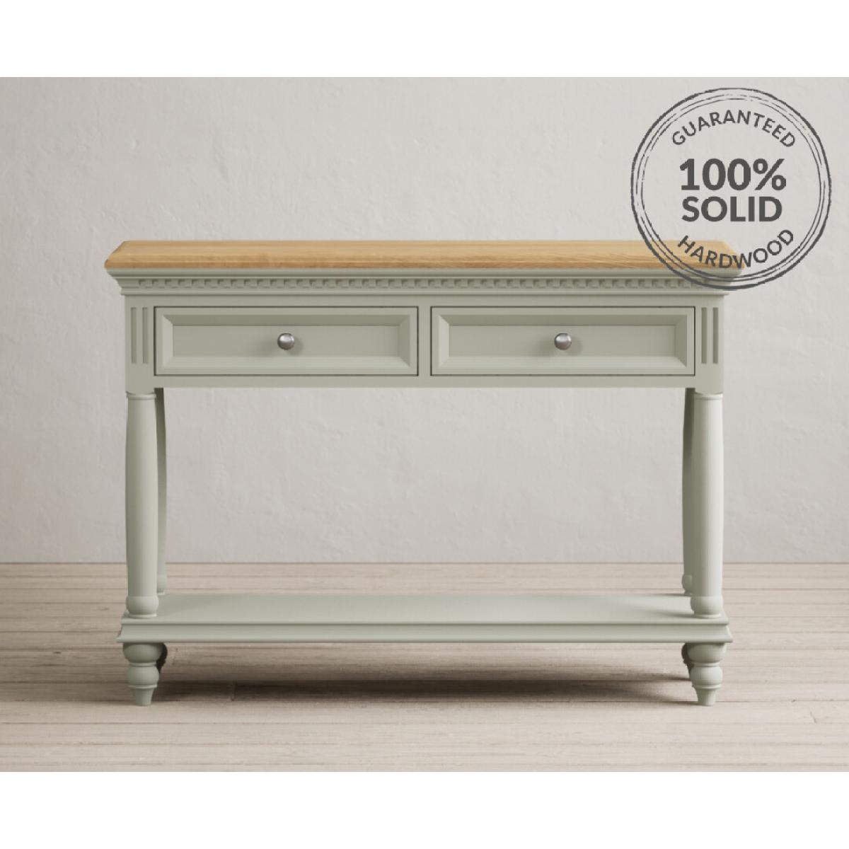 I’m a big fan of this green-and-oak console - the soft sage paint keeps things fresh without overwhelming a hallway or living room, while the oak top adds warmth and a touch of texture. Its neat drawers and lower shelf are genuinely useful for stashing keys, mail or a set of matching baskets, so it feels as practical as it does pretty.