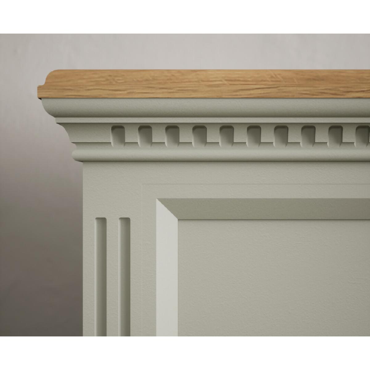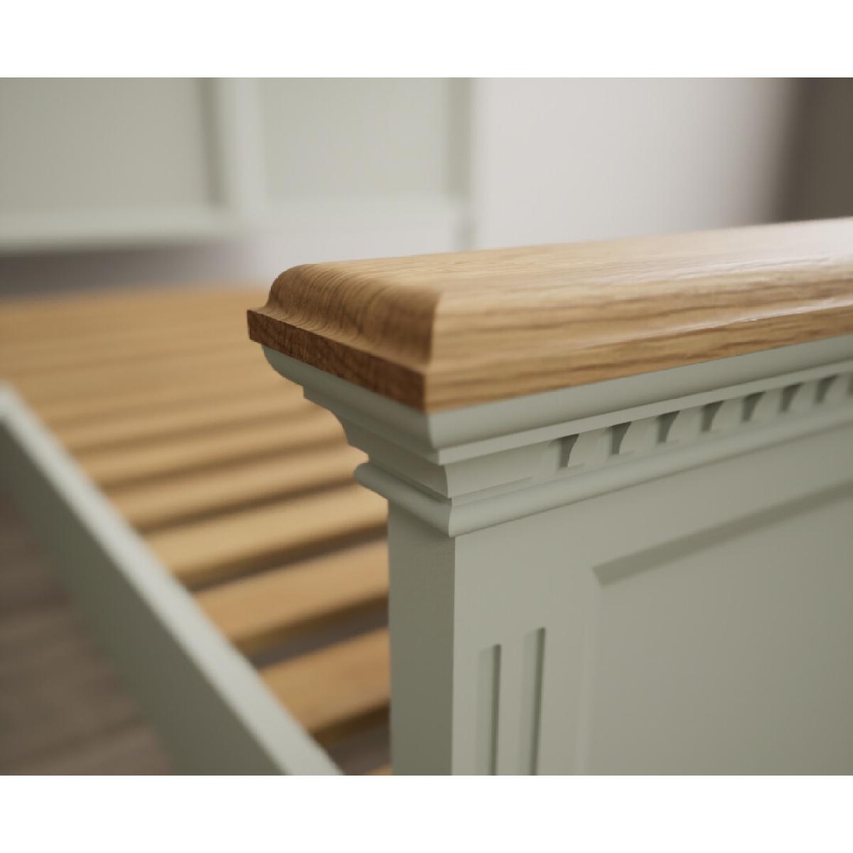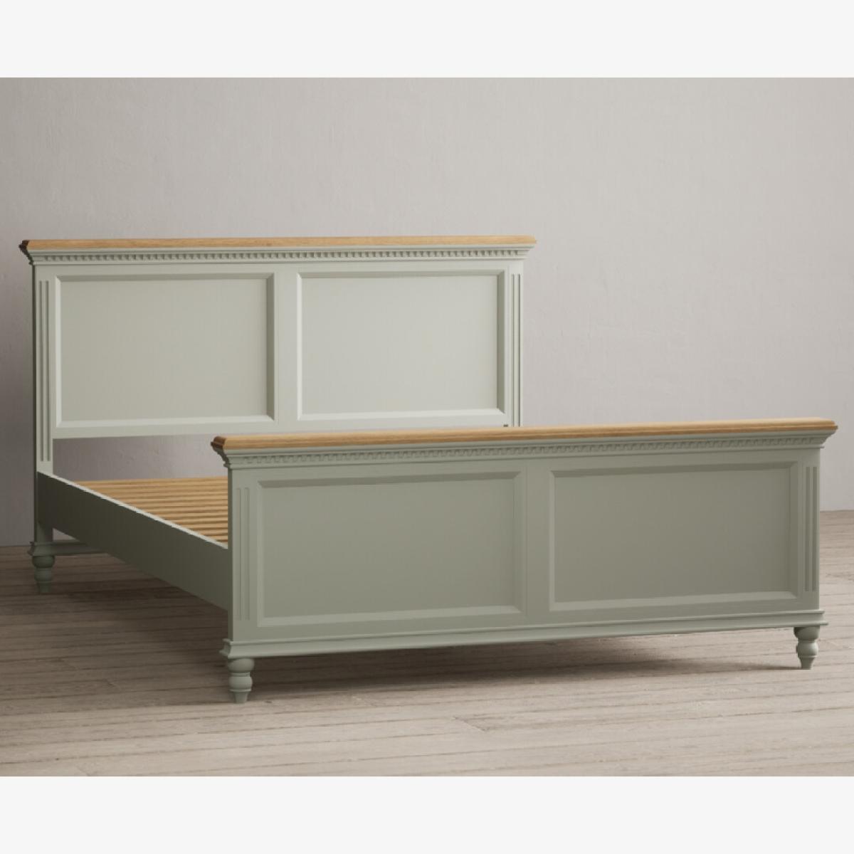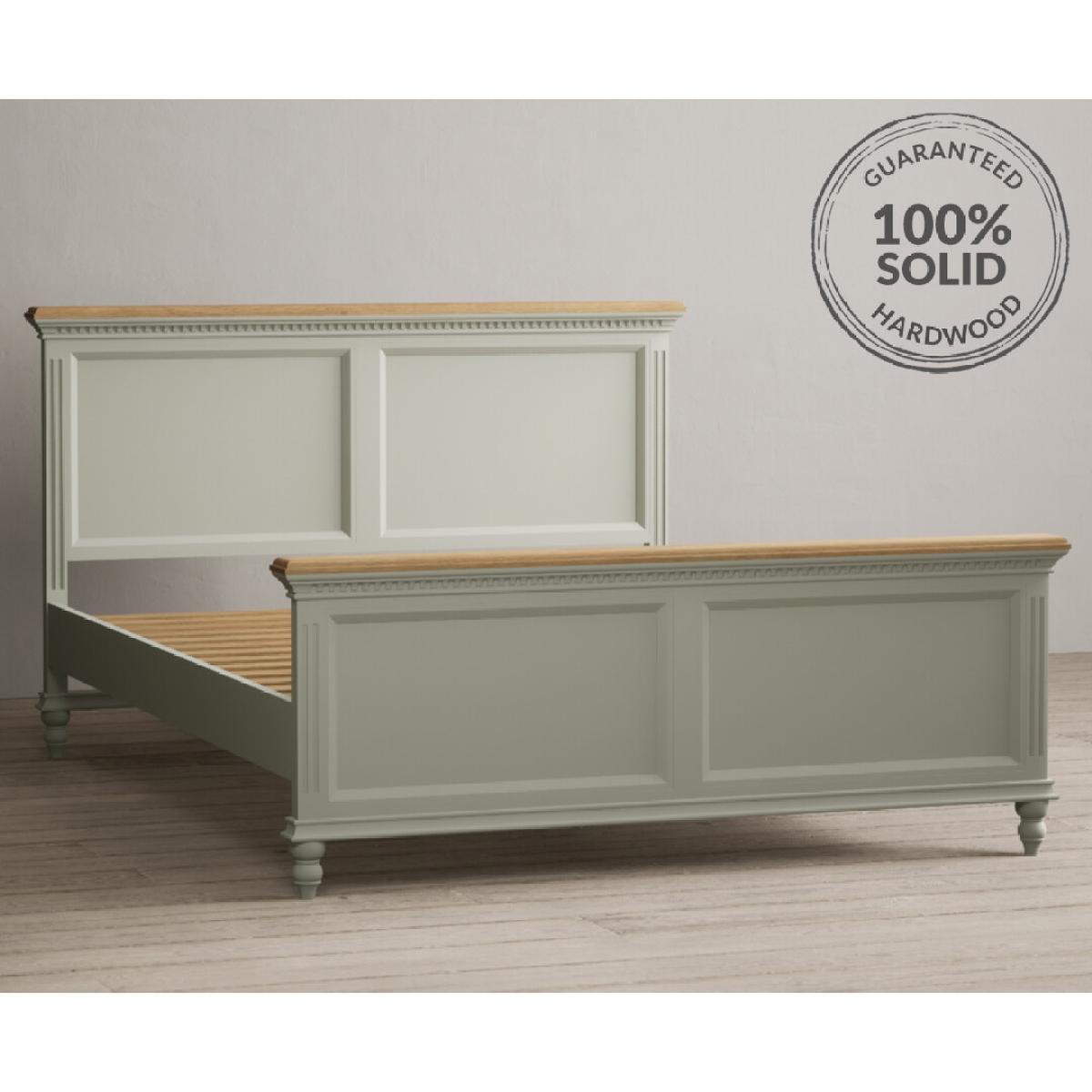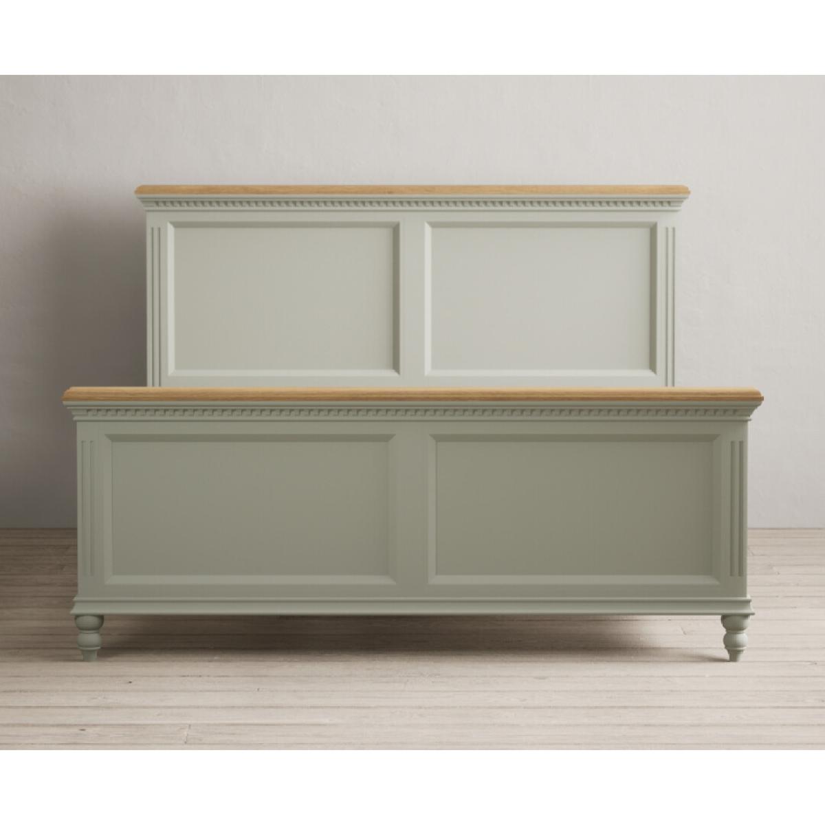 The Francis Oak and Soft Green Painted Double Bed features a sturdy soft green painted solid hardwood frame and solid oak topping the headboard and footboard.