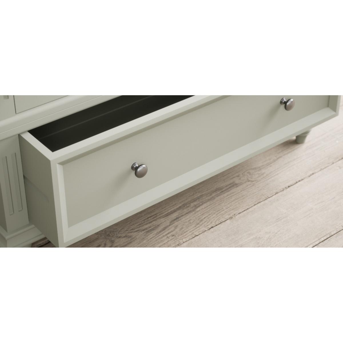 For styling, top it with low-profile greenery or simple storage boxes to make the most of the cornice shelf. Pair with linen curtains, a jute rug and touches of brass hardware for contrast. If you have a feature wall behind, choose a deeper shade or subtle pattern to set it off; otherwise, a mirror or framed print above will give height and interest.