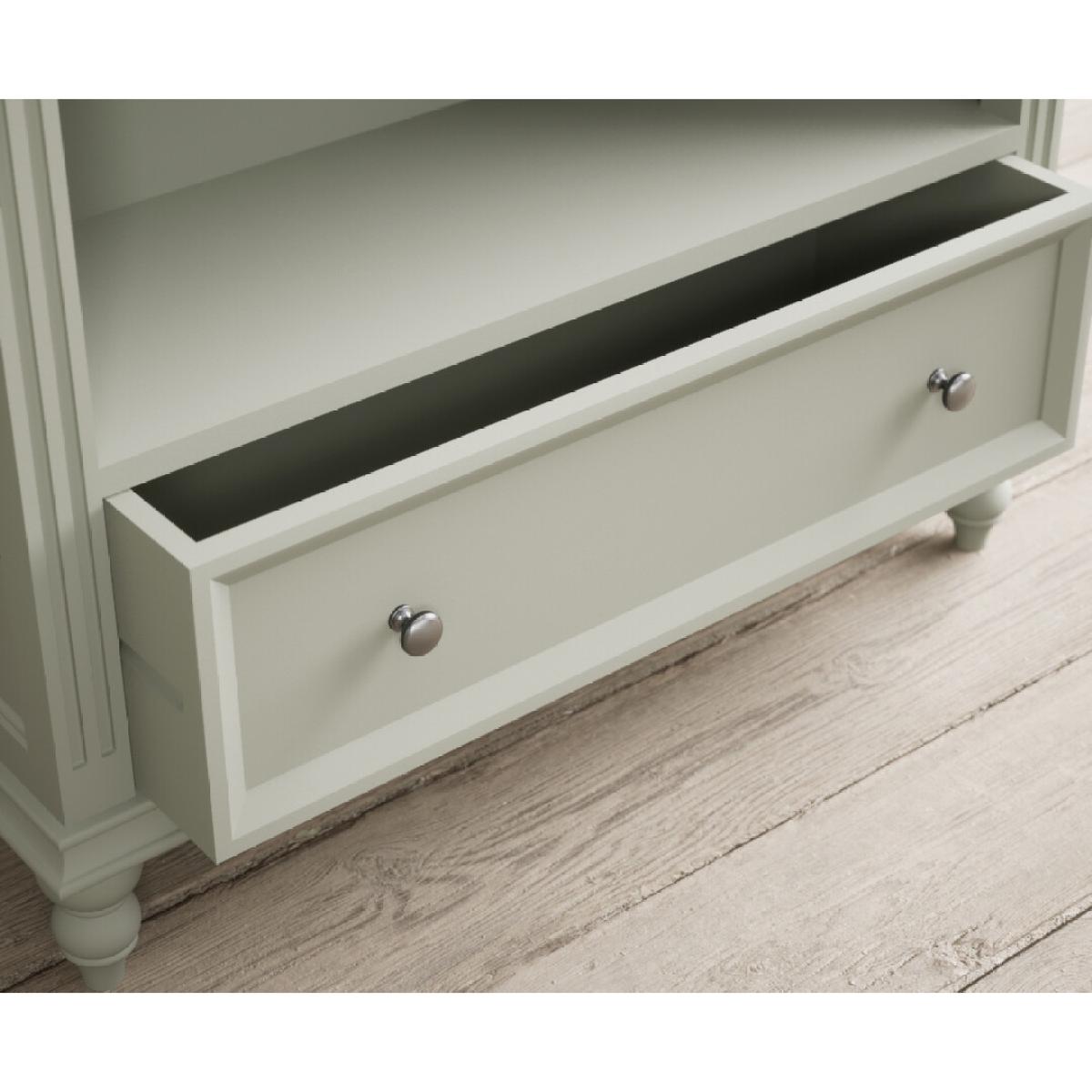 I’m a fan of this soft-green oak bookcase because it brings a hint of country charm without feeling fussy, and the muted tone works brilliantly against neutral or warm-toned walls. Its low height makes it ideal for a hallway or beneath a window in a living room, and the single drawer at the base keeps everyday clutter - think keys, remotes or chargers - out of sight. Styling tip: mix a few art books laid flat with upright paperbacks, slot in a woven basket or two for scarves or throws, and let a trailing plant spill over the top shelf to soften the lines. If you need a splash of metallic, a couple of brass-framed photos or a statement lamp will lift the look without overpowering the calm palette.