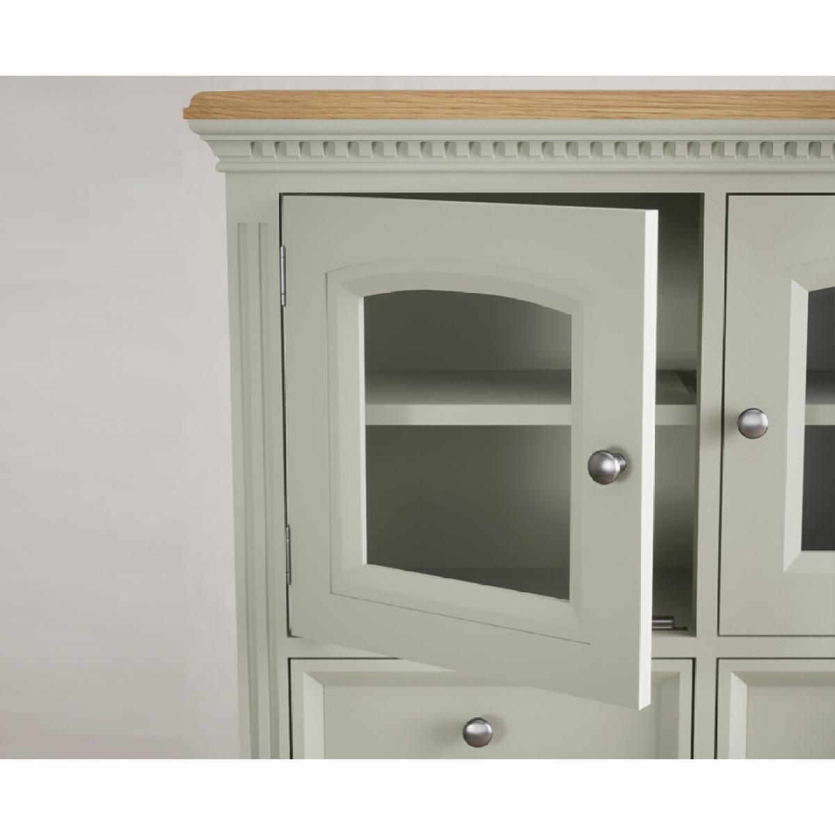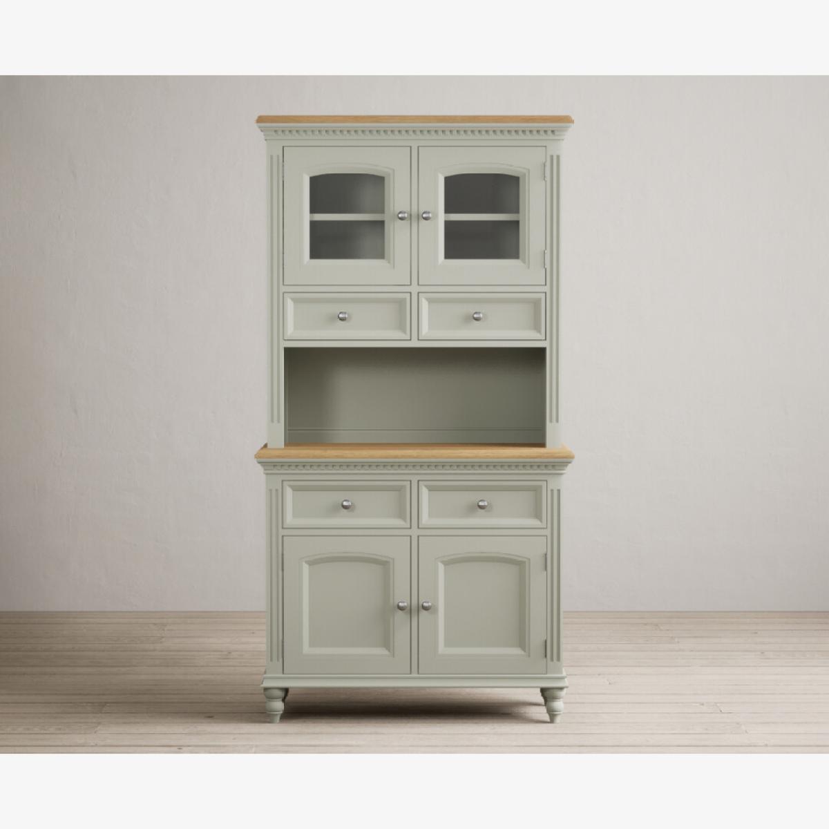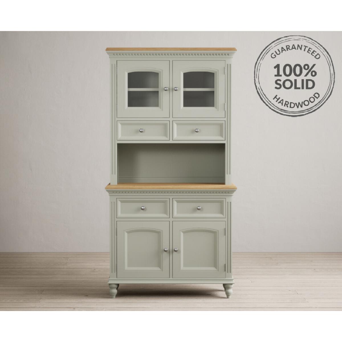 Traditionally crafted and built to last, the Francis Oak and Soft Green Painted Small Dresser features a soft green painted solid hardwood frame and 100% solid oak top.