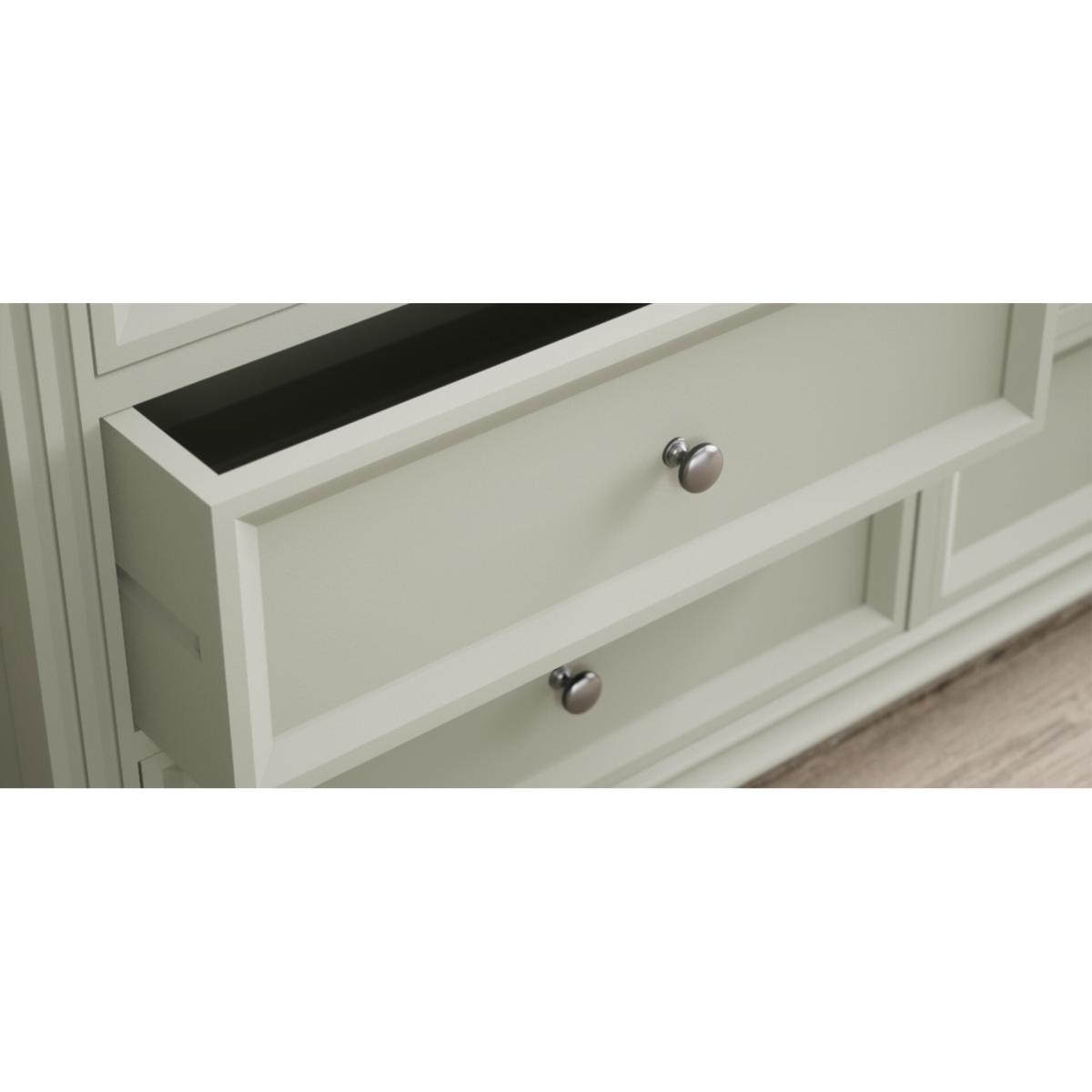I’m a fan of this soft-green dresser for its sturdy oak top and classic proportions - it feels both solid and versatile, with nine drawers that tackle clutter without looking bulky. The muted paintwork works as a neutral backdrop, so it easily complements wood tones, brass or black-metal hardware, and natural-texture accents. It suits a country-style bedroom, a Scandi-inspired hallway or even a relaxed coastal living room. Try styling the top with a low-profile mirror centred above, a tray for everyday bits and a couple of pottery vases for varying heights. A runner rug in natural fibre underneath helps ground the piece and adds a cosy touch.