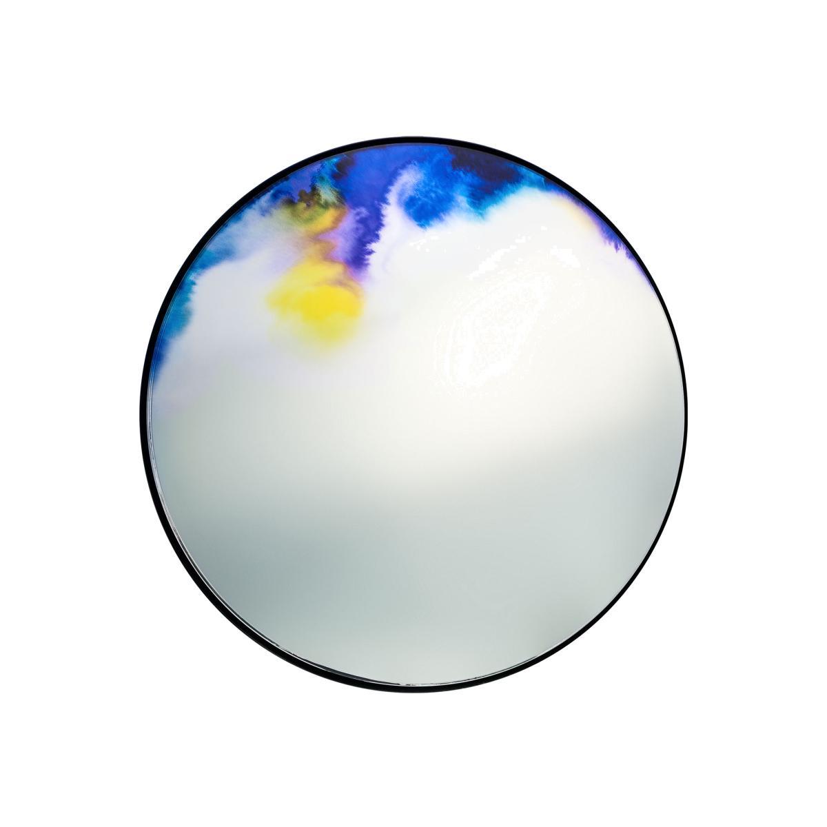 The wall mirrors FRANCIS evolved from an experience with pigmentation. The shifting colours on the periphery suggest the oxidation of antique mirrors or hues on a makeup palette. This observational design, with vivid and deep colours, is reflected inside the surface of each mirror by digital printing. The back of the mirror, slightly convex, is suspended through the centre, which allows the mirror to fall forward such as with venetian mirrors.