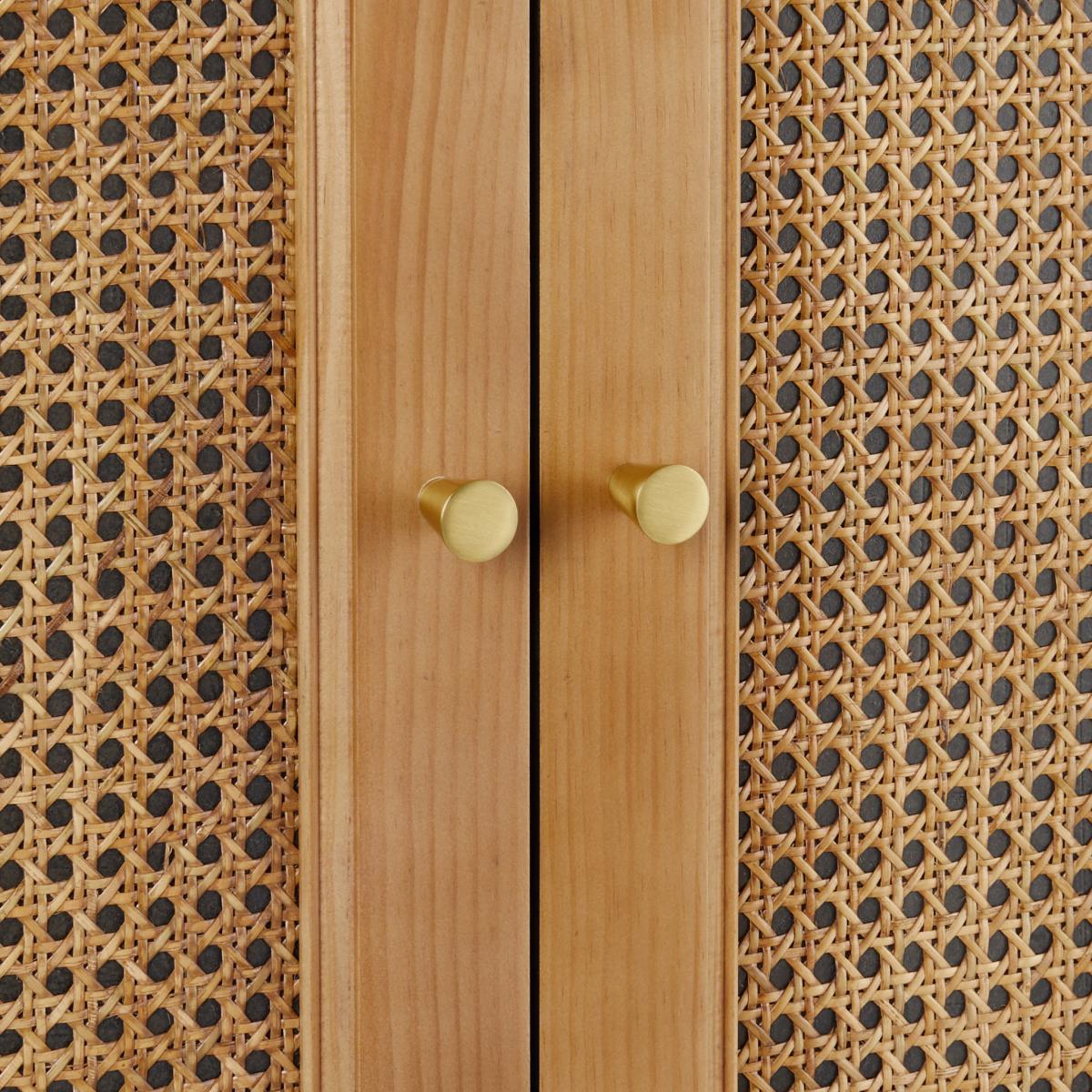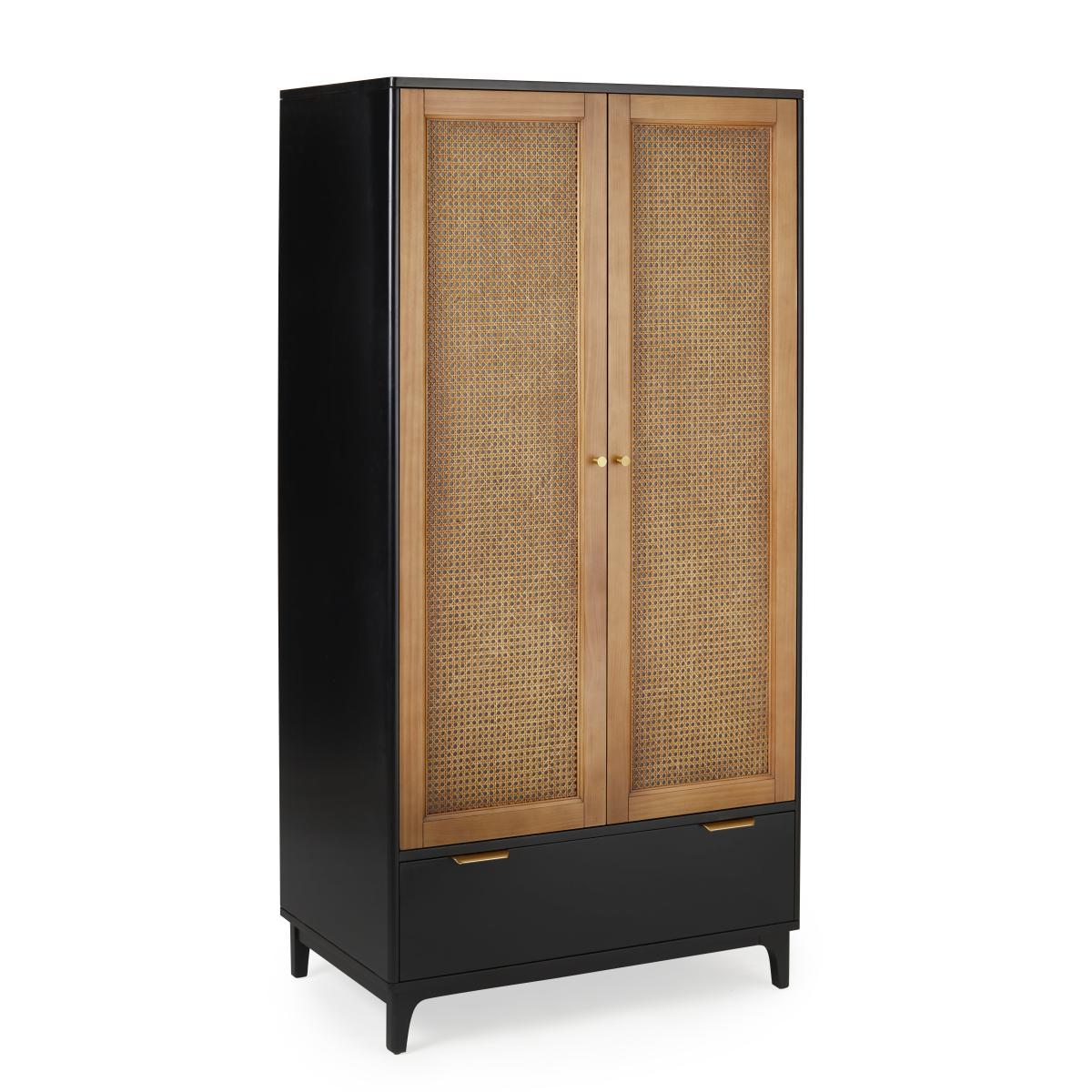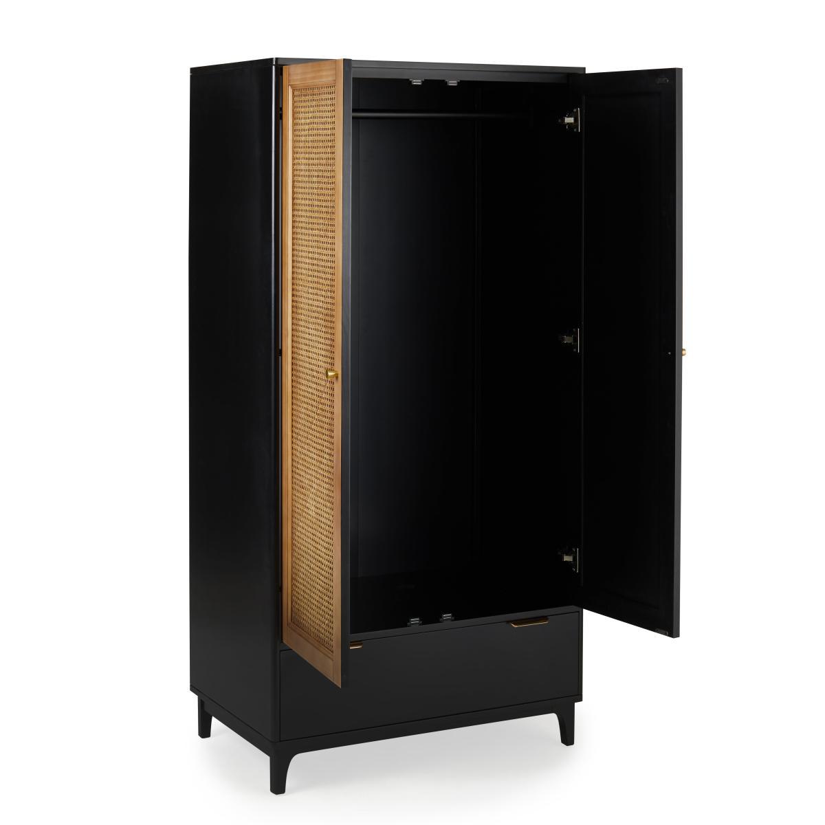The Franco Black Wardrobe offers a sleek combination of modern and natural elements, making it highly versatile. I love its clean lines and the contrast between the black frame and the cane detailing, which adds texture without overwhelming a space. It works particularly well in contemporary or Scandinavian interiors where minimalism and subtle natural accents are key. For styling, consider pairing it with neutral-toned accessories or metallic accents to elevate the look. Practical tips include using the lower drawer for accessories or folded items, and arranging clothing in colour order inside the wardrobe for an organised, visually pleasing effect. This wardrobe is a great statement piece that combines function with understated style.