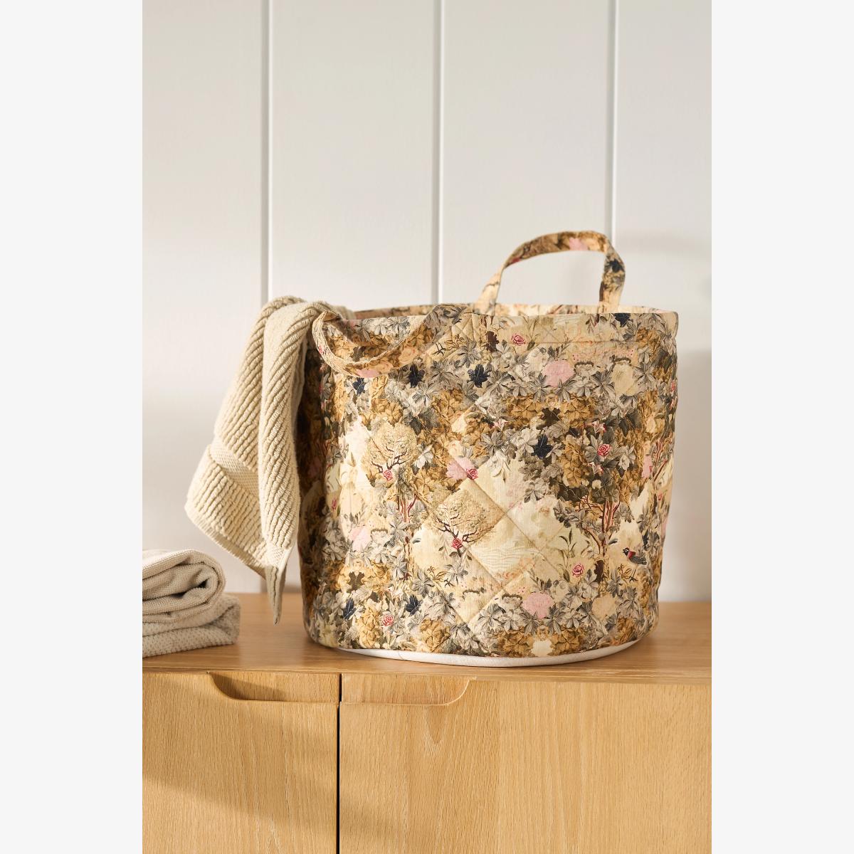 The Francois quilted fabric basket is a versatile piece that adds texture and a touch of subtle luxury to both contemporary and traditional interiors. I love its neutral tones and tactile quilting, making it an ideal storage solution for organising essentials in living rooms, bedrooms, or even bathrooms. It works particularly well for creating a soft, inviting aesthetic when displayed on open shelves or beside beds and sofas. Practical styling tips include using it to corral blankets, laundry, or toys, and pairing it with other textural elements like knitted throws or woven accessories to enhance its cosy appeal. Its understated pattern means it can seamlessly blend into various colour schemes without overpowering the space.