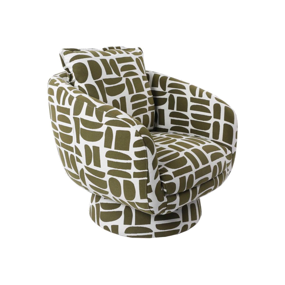 I love the Francois lounge armchair for its bold, graphic fabric that adds visual interest without overwhelming a space. It works brilliantly in contemporary interiors, especially those with a mid-century or eclectic vibe, where it can act as a statement piece. Practical styling tips include pairing it with neutral or solid-coloured accessories to let the pattern stand out, and placing it in a corner or beside a side table for a cosy reading nook. Its rounded shape and comfortable form make it versatile for both living rooms and bedrooms, adding a touch of personality while remaining functional.