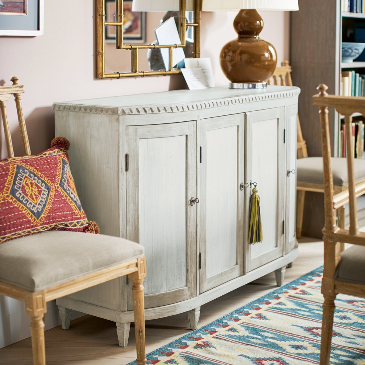 I love this sideboard because of its soft, weathered finish that adds a relaxed, coastal feel to any space. It’s versatile enough to work in both traditional and contemporary interiors, especially in understated schemes like Scandi-inspired or vintage-inspired rooms. For styling, I’d suggest keeping it aside with a few curated accessories-think simple ceramics, fresh flowers, or a statement lamp-to highlight its charming detail without overwhelming. It’s also practical for storage in dining rooms or living areas, helping to keep clutter out of sight while adding character. The Cloud Wash finish lends itself well to pairing with natural textures and muted colour palettes, making it a lovely centrepiece that feels both relaxed and refined.