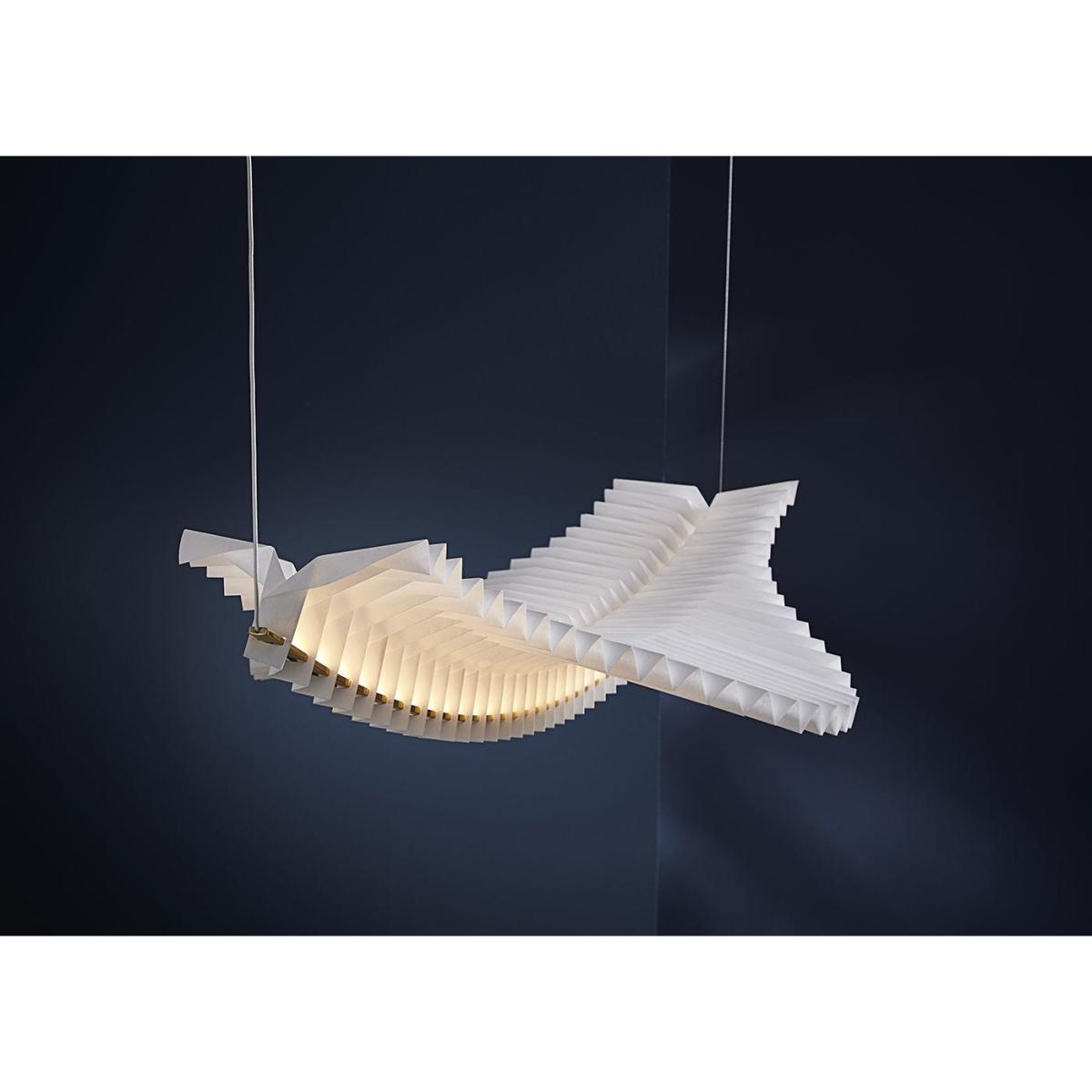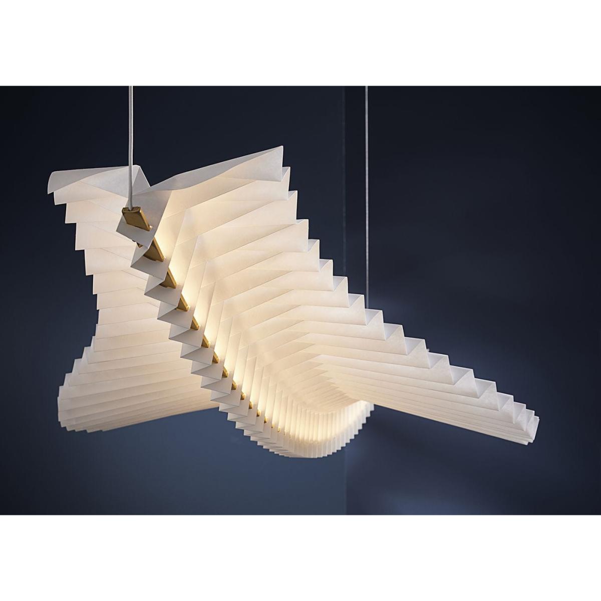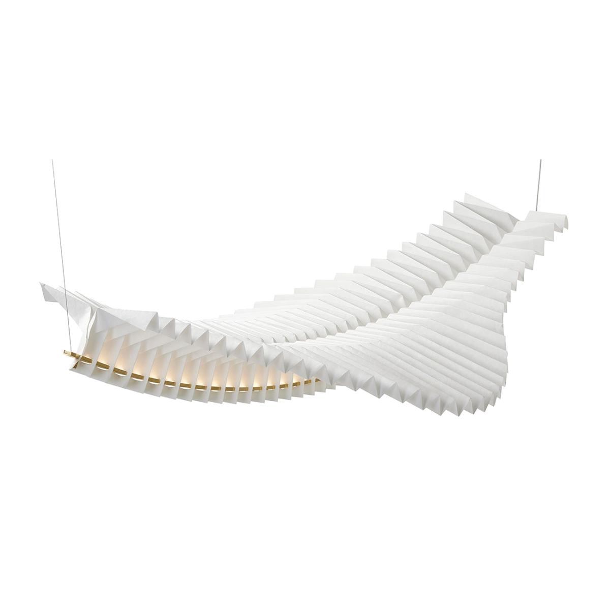 "Sora is a floating sculptural statement piece of simply epic proportions. Handmade using traditional Japanese origami construction techniques, Sora succeeds in exuding a serene, radiant aura.