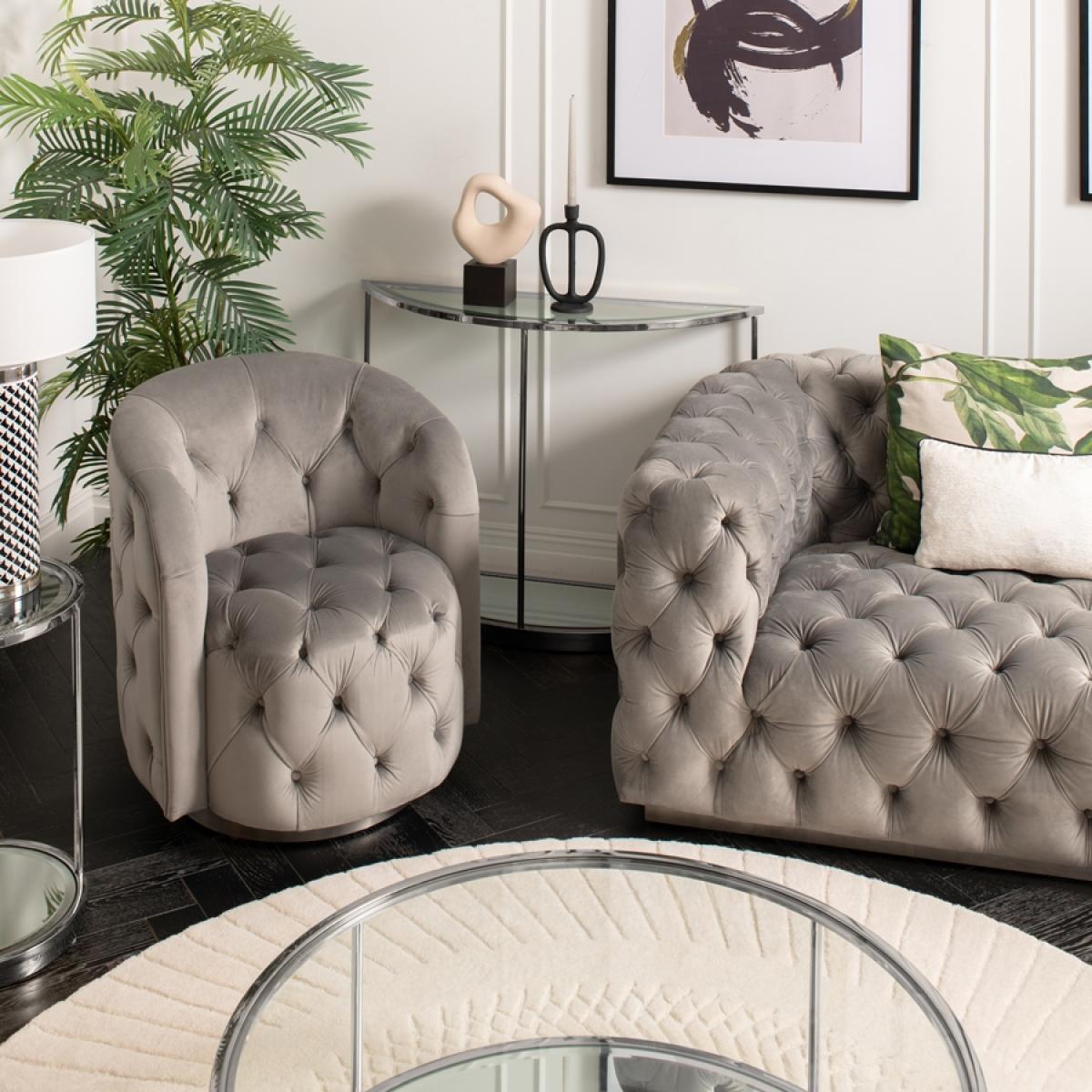 I love this chair for its elegant yet versatile design. The dove grey upholstery paired with a silver base makes it a sophisticated choice that works well in both contemporary and transitional interiors. It's ideal as an accent piece in living rooms, bedrooms, or even a stylish workspace where a touch of luxe is desired. For styling tips, consider pairing it with plush cushions or contrasting textures to add depth. Its neutral hue allows it to blend seamlessly with colourful or muted palettes, making it a flexible option for various schemes. Keep the surrounding decor minimal to let the chair be the statement, or add bold accessories for a more eclectic vibe.
