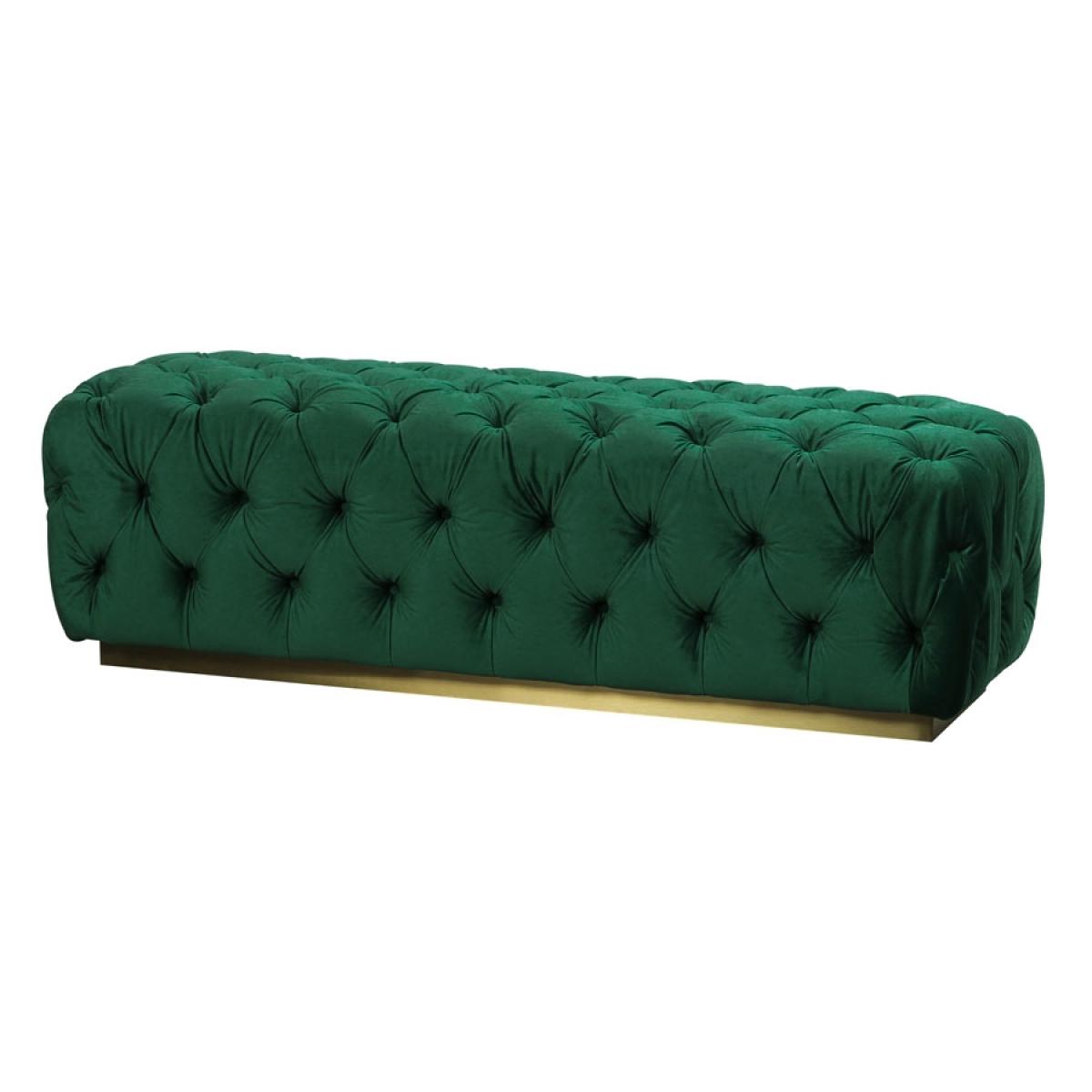 Designed to be used alone or as an extension to the Frankfurt sofas. Skilfully handcrafted with traditional deep buttoning. Sprung base with comfortable foam and fibre top. Brushed stainless steel base with brass finish. Velvet upholstery fabric.