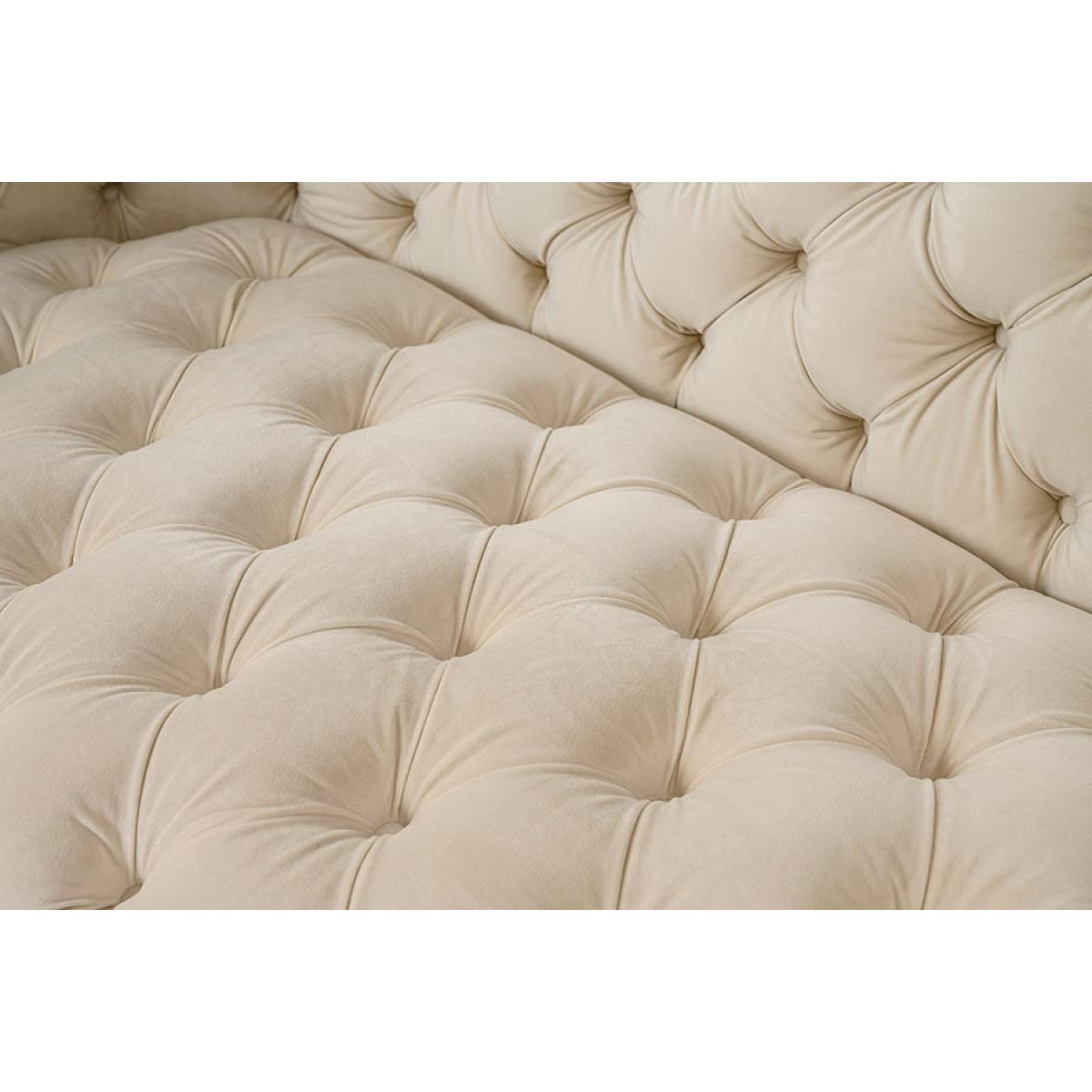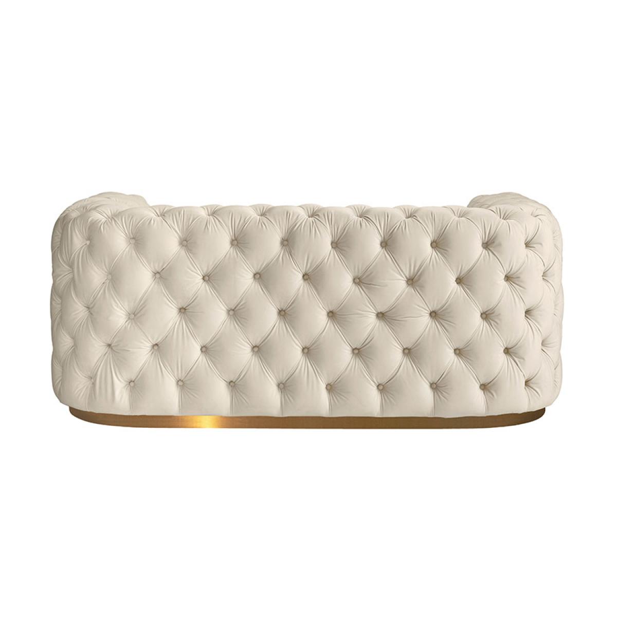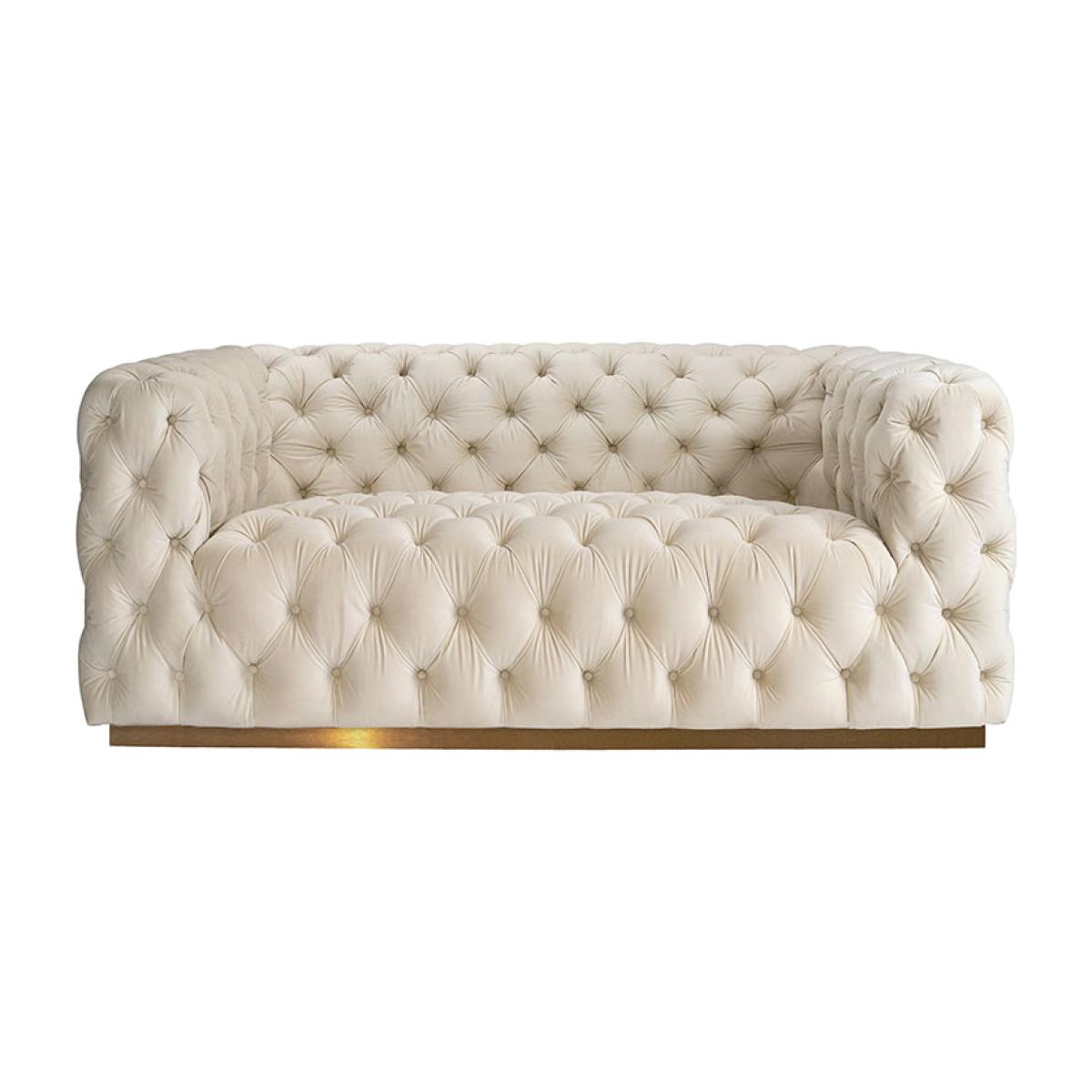 A skilfully handcrafted, deep buttoned sofa with elegant curvaceous lines. Comfortable foam and fibre seat with sprung base. Brushed stainless steel base with brass finish. Base available in brushed stainless steel finish upon request. Velvet upholstery fabric. Delivered assembled. Please note, due to the generous size of this of this sofa we advise that you check your doorway dimensions prior to purchasing to ensure a smooth installation. Free returns on sofas if you change your mind within 7 days. Simply notify us, put the sofa back in the box, and we will collect it and send you a full refund. (This offer excludes Scottish highlands and islands & any Ireland addresses).