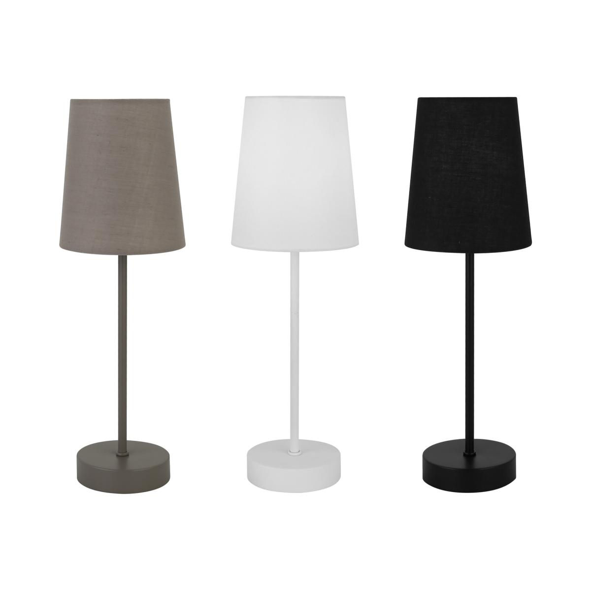 The slim and stylish Frankie Table Lamp is perfect for your living room, hallway, or bedroom. The lamp features a simple yet elegant base with a matching shade. This contemporary lamp provides soft illumination and comes in grey, white, or black to complement your existing home decor.