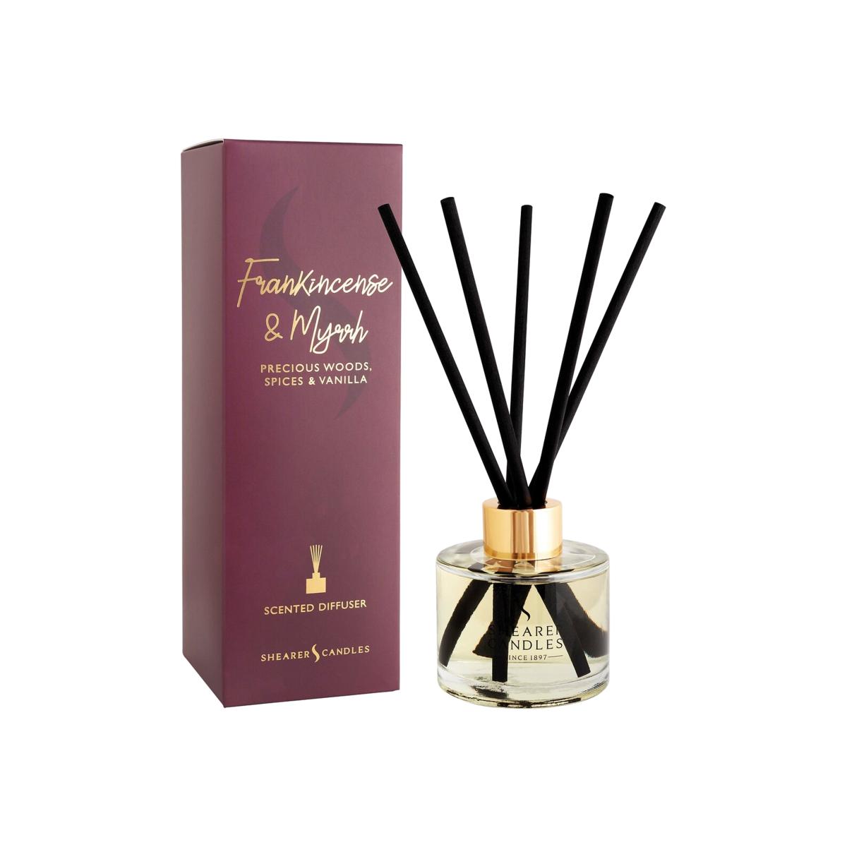 I love this reed diffuser for its warm, inviting scent that pairs well with a range of interiors, from boho-chic to modern minimalism. The earthy notes of frankincense and myrrh add a touch of sophistication without overwhelming a space. It works well on side tables, open shelves, or bathroom counters where it can be both a decorative element and a source of calming fragrance. For styling, consider pairing it with natural textures like wicker or woven baskets, or position it alongside greenery to enhance its organic vibe. Keep the reeds upright and periodically flip them to refresh the scent, ensuring it remains a subtle but stylish addition to your home.