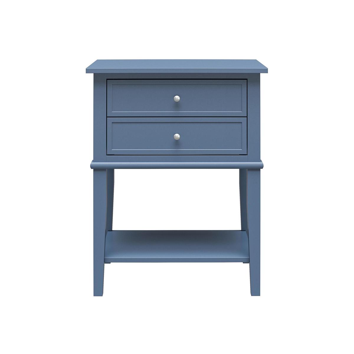 Make sure your essential items are always easily accessible with the Ameriwood Home Franklin Accent Table with 2 Drawers. This elegant piece is a perfect addition to your bed or sofa. The table comes with 2 spacious drawers that can store your remotes, coasters, magazines, and other household items. You can also place a lamp on the large top surface or keep your drink close at hand. The lower open shelf is perfect for organizing your reading materials. The straight lines and beautifully painted finish of this piece add a touch of colour to your space. Made of durable painted MDF and real wood legs, this Accent Table is built to last.