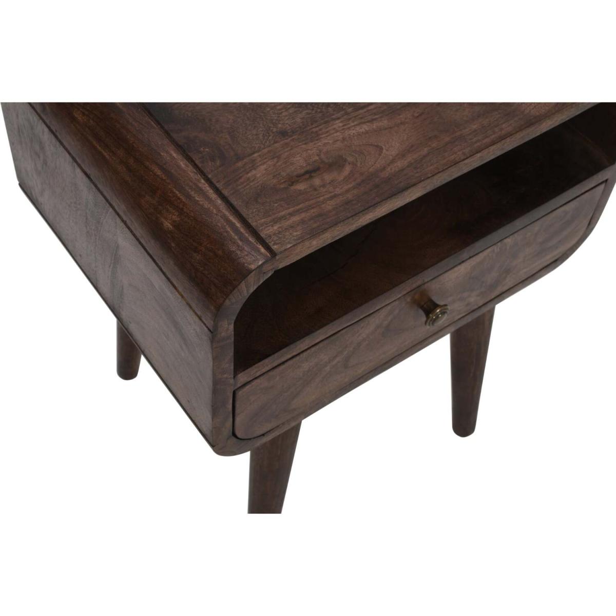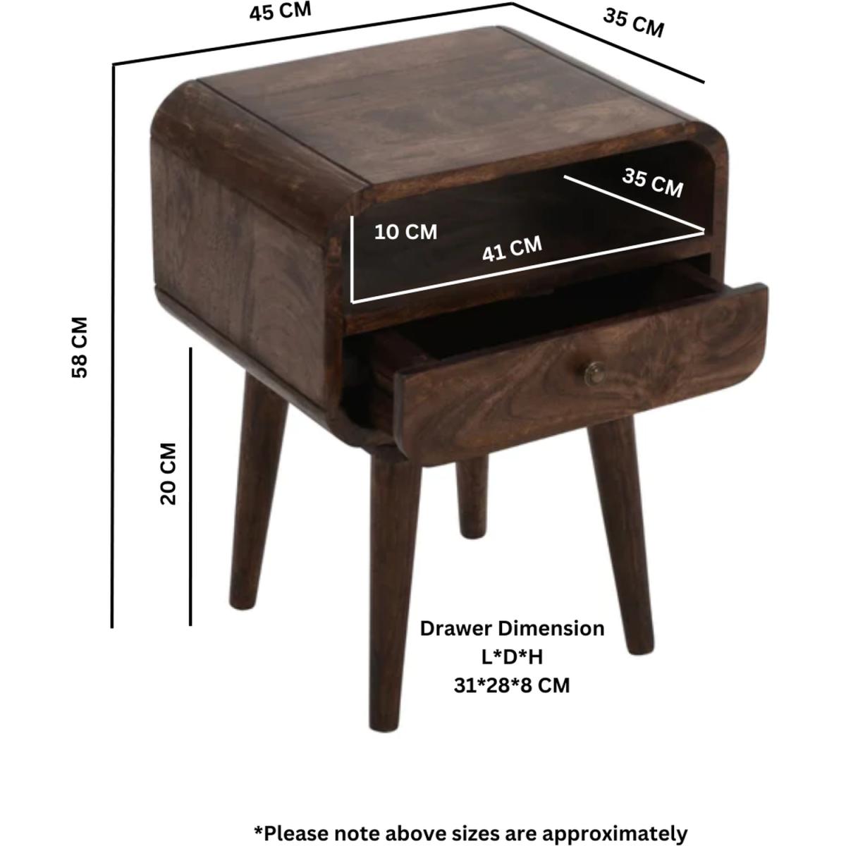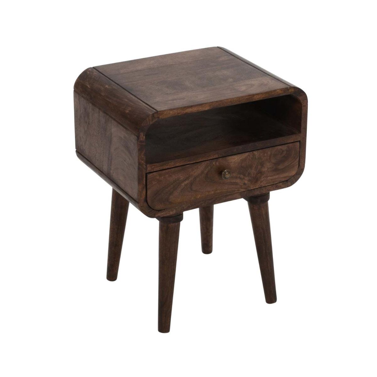 Introducing the Handmade Franklin Dark Mango Wood Bedside Table with Drawer, a beautifully crafted piece of furniture that offers both style and practicality. Made from high-quality mango wood, this bedside table is built to last and is sure to become a treasured part of your home decor. Measuring 45x35x58 CM (LxDx. H), this bedside table provides ample surface area for your bedside lamp, books, or other items. Only the legs will need to be attached, so you don't have to worry about putting it together or hiring a professional to do so. This saves you time and hassle, allowing you to enjoy your new piece of furniture right away. The bedside table features a sleek and modern design with a lacquered finish that adds a touch of elegance to any room. It has a spacious drawer that opens smoothly and provides easy access to your belongings. The drawer is equipped with a sturdy metal handle that complements the overall design of the bedside table. Whether you're looking for a functional piece of furniture for your bedroom or guest room, the Handmade Franklin Dark Mango Wood Bedside Table with Drawer is the perfect choice. Its high-quality materials, unique design, and durable construction ensure that you're getting a piece of furniture that is both beautiful and practical.