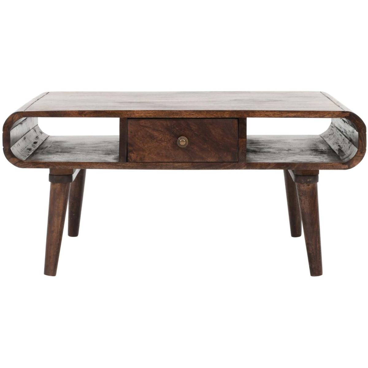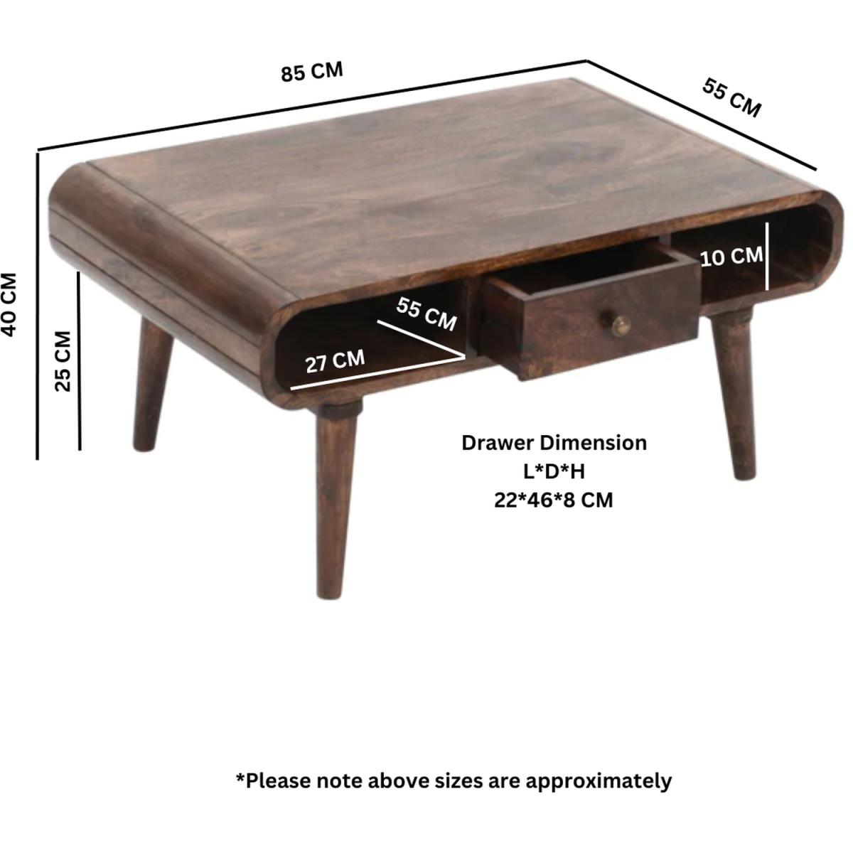 Introducing the Franklin Wood Coffee Table, a beautifully crafted piece of furniture that offers both style and practicality. Made from high-quality mango wood, this coffee table is built to last and is sure to become a treasured part of your home decor. Measuring 85x55x40 CM (LxDx. H), this coffee table provides ample surface area for your beverages, snacks, or other items. Only the legs will need to be attached, so you don't have to worry about putting it together or hiring a professional to do so. This saves you time and hassle, allowing you to enjoy your new piece of furniture right away. The coffee table features a sleek and modern design with a lacquered finish that adds a touch of elegance to any room. It has a spacious drawer that opens smoothly and provides easy access to your belongings. The drawer is equipped with a sturdy metal handle that complements the overall design of the coffee table. Whether you're looking for a functional piece of furniture for your living room, the Franklin Coffee Table is the perfect choice. Its high-quality materials, unique design, and durable construction ensure that you're getting a piece of furniture that is both beautiful and practical.