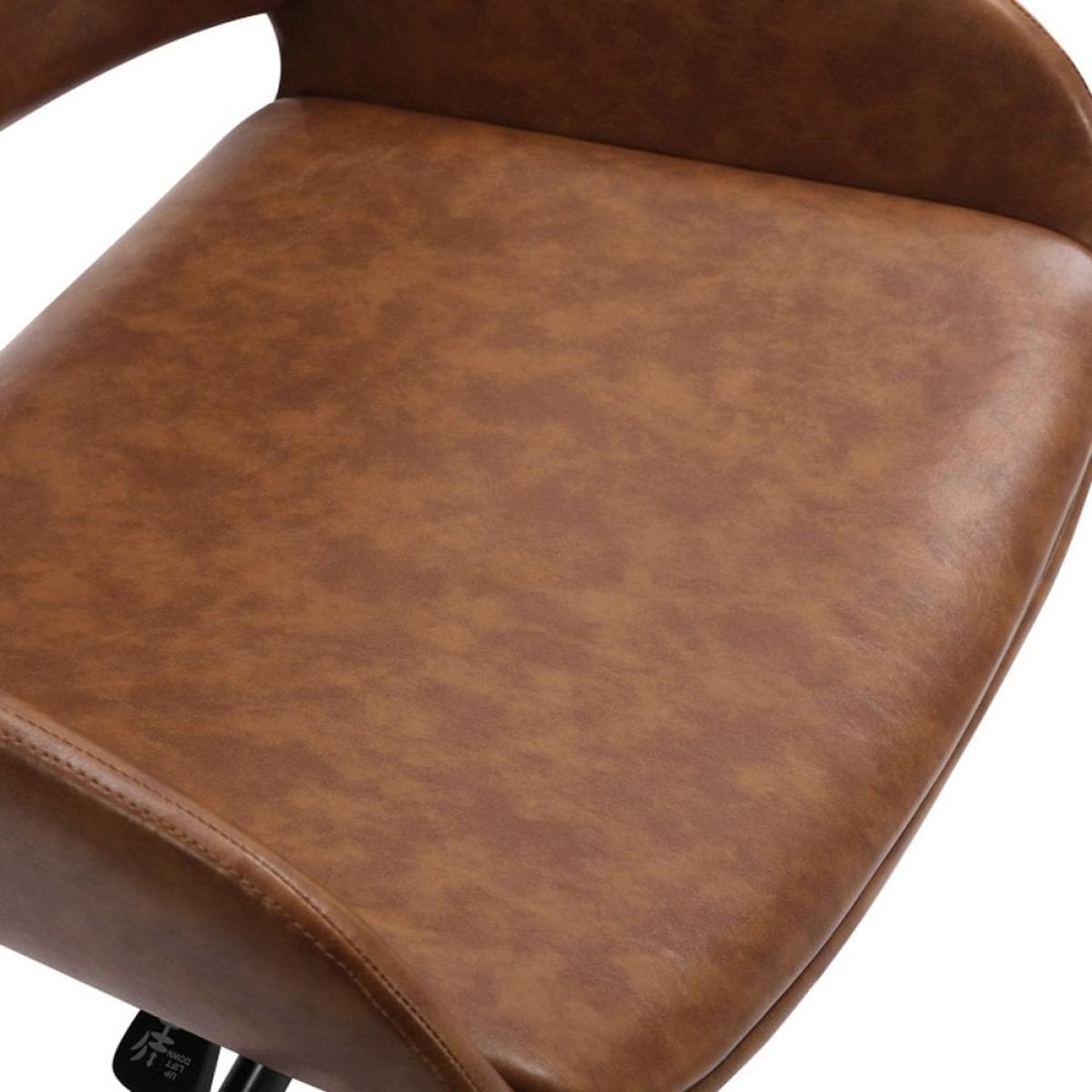 I love this vintage tan office chair for its timeless, versatile appeal. Its warm leather finish adds character to a variety of interiors, from industrial and retro spaces to modern, minimalist offices. It works particularly well in schemes that feature natural materials or a neutral palette, providing a contrasting focal point. For styling tips, pair it with a classic wooden desk or a sleek metal workstation to balance the vintage vibe with contemporary function. Additionally, adding a cosy throw or patterned cushion can soften its appearance and make the space feel more inviting. This chair’s practicality combined with its aesthetic appeal makes it a smart choice for both home and professional workspaces.