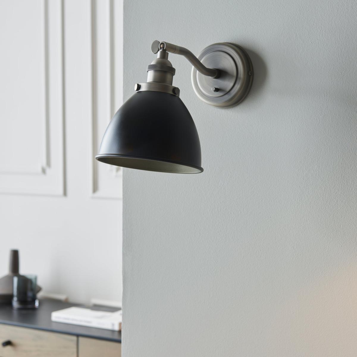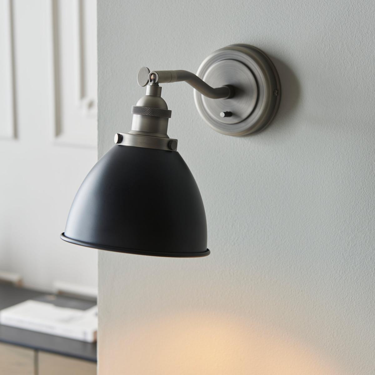 1 Pack Pewter wall light with adjustable position and warm brass interior for cosy glow. Vintage look. More items available in the Franklin Range  1 Pack Pewter wall light with adjustable position and warm brass interior for cosy glow. Vintage look. More items available in the Franklin Range