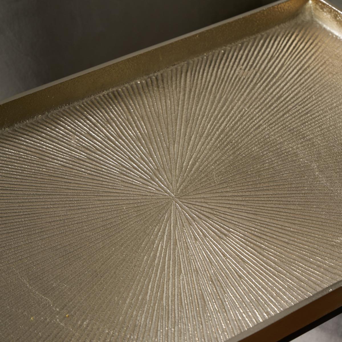 I love how this gold-cast side table brings a polished accent without feeling heavy. Its slim tray top with subtle radial detailing suits modern, mid-century or art deco schemes, and the lightweight frame makes it easy to reposition next to a sofa or armchair. For practical styling, layer a small stack of design books and top with a minimal vase or candlestick. Leave enough free space for a coffee mug or remote, so it remains both a decorative piece and a functional surface.