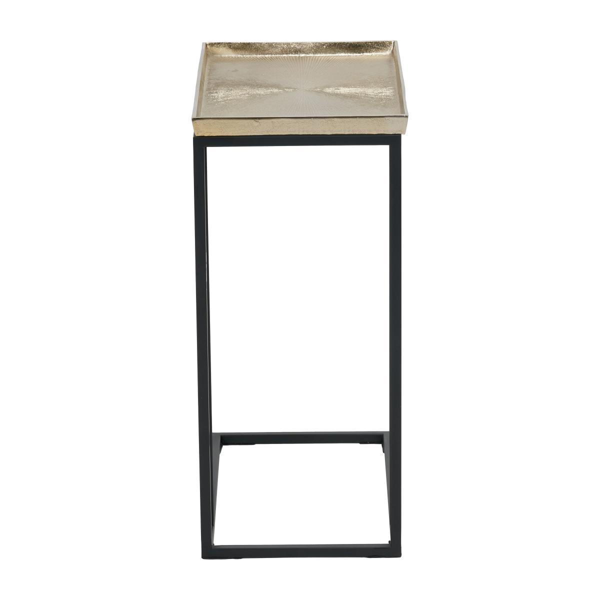 * Gold cast metal top* Black metal legs* Crafted in India This table's gold cast metal top provides a touch of luxury, while the black metal legs ensure stability and a sleek, modern look. This side table is perfect for adding a sophisticated touch to your home, whether used beside a sofa or as a stylish nightstand.