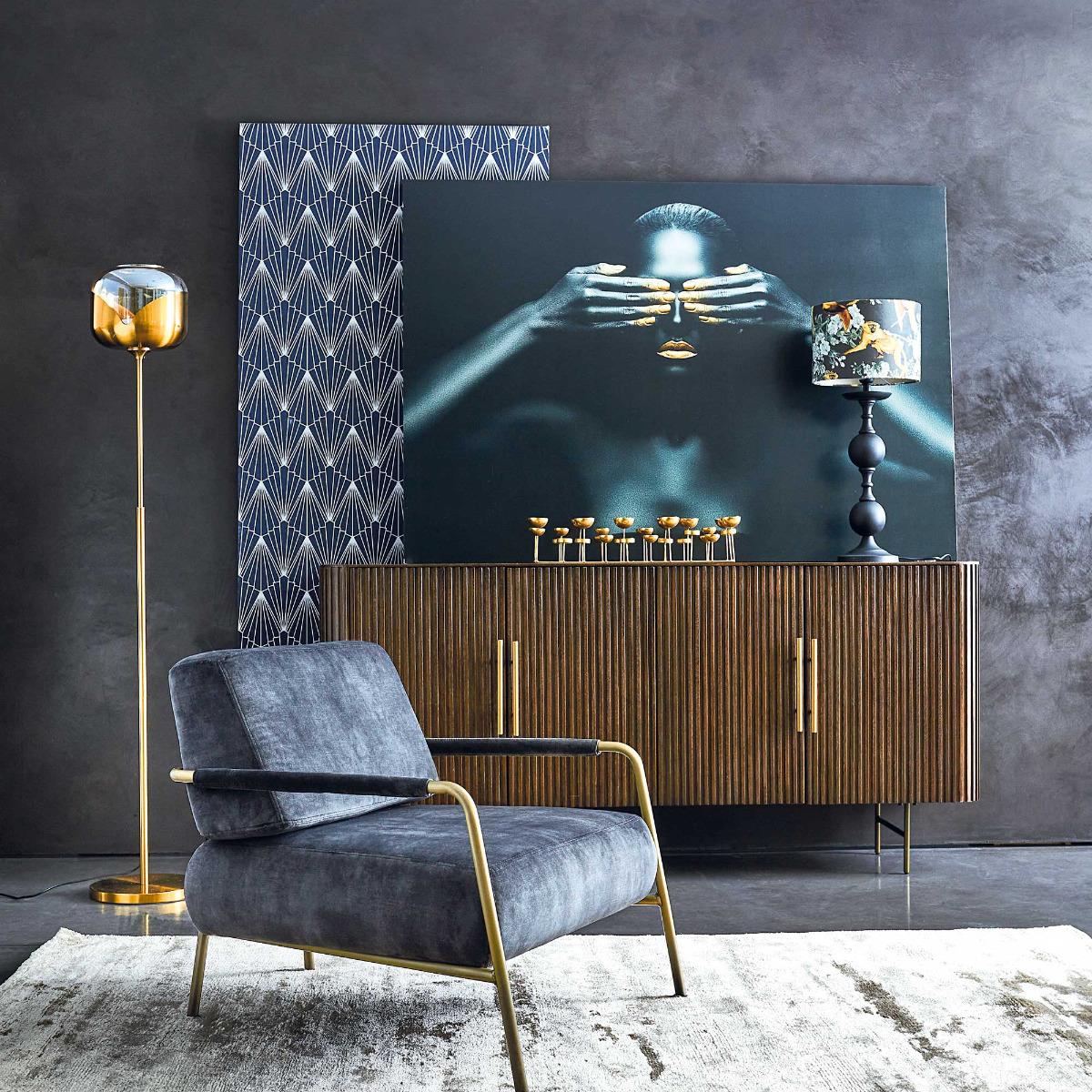 I love this dark fabric armchair for its sleek, contemporary look that offers a sophisticated touch to a range of interiors. It works particularly well in modern or minimalist spaces, but can also add contrast in more traditional settings. The black fabric makes it versatile and easy to pair with different colour schemes, while the gold legs introduce a subtle touch of glamour. Practical styling tips include placing it beside a statement side table with a tabletop lamp for cosy reading nooks, or grouping a couple in a corner to create an inviting informal seating area. Its clean lines and neutral colour make it a flexible choice that can be dressed up with textured cushions or kept pared-back for a more understated feel.