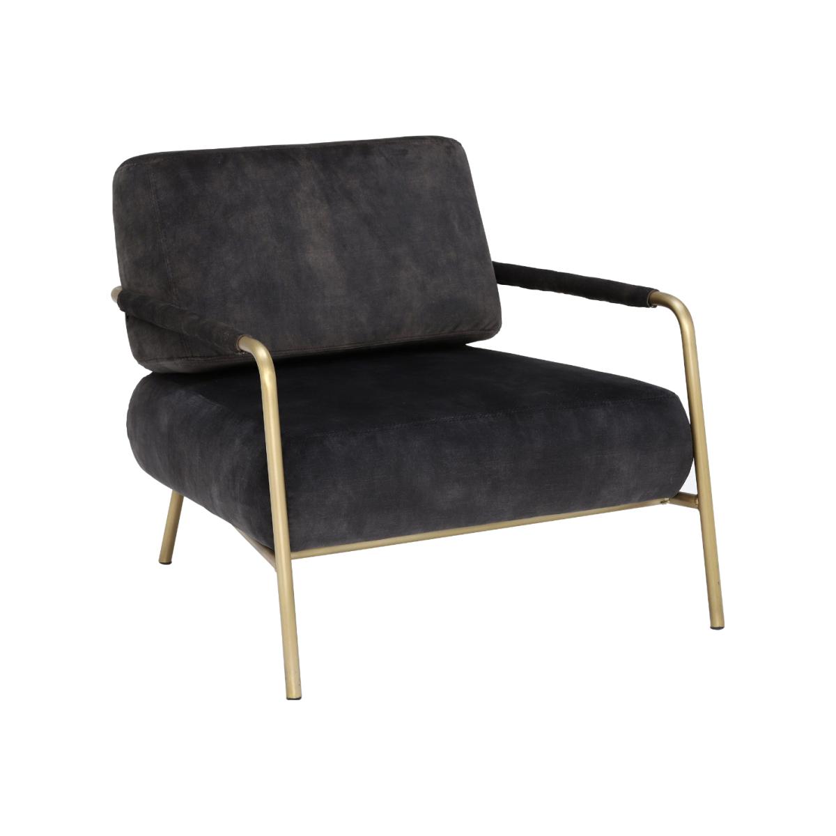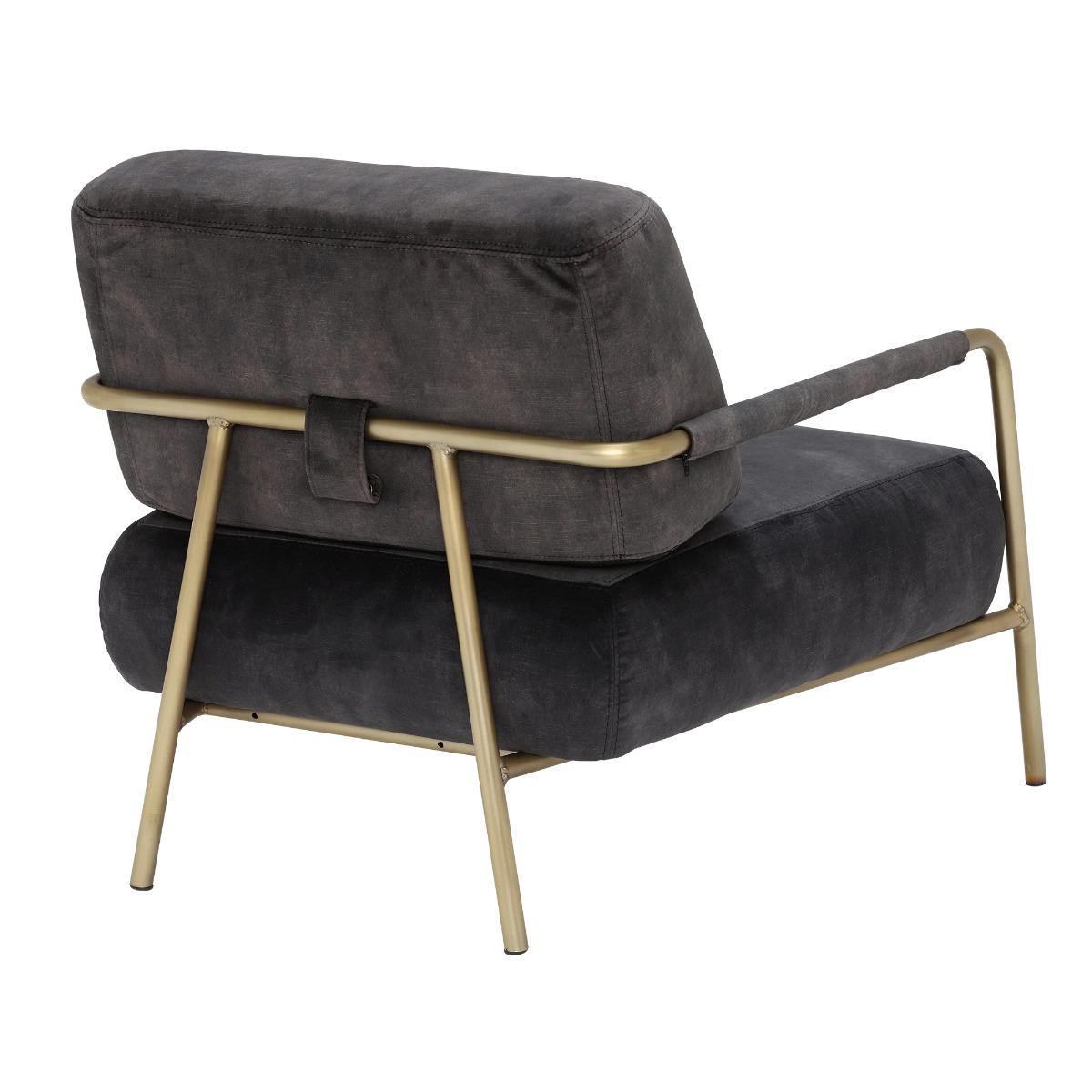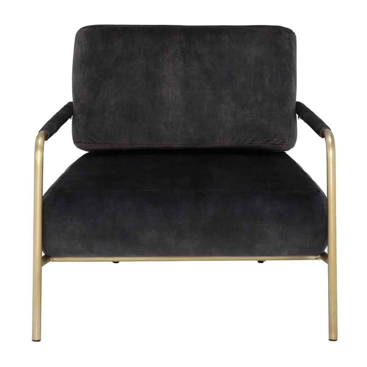 Featuring a contemporary combination of grey-black velvet upholstery and brass, the Fraser club chair is incredibly on-trend. Supremely comfortable, it boasts a generously deep seat with foam-filled cushions that retain their shape well. The armchairs slim metal frame is exposed for a dose of modern style, lending a light and open look that will enhance any living space. In the lounge, bedroom, hallway or study, this stunning velvet chair is sure to become a family favourite. Shown in Lovely Coal Velvet with an Antique Brass frame.