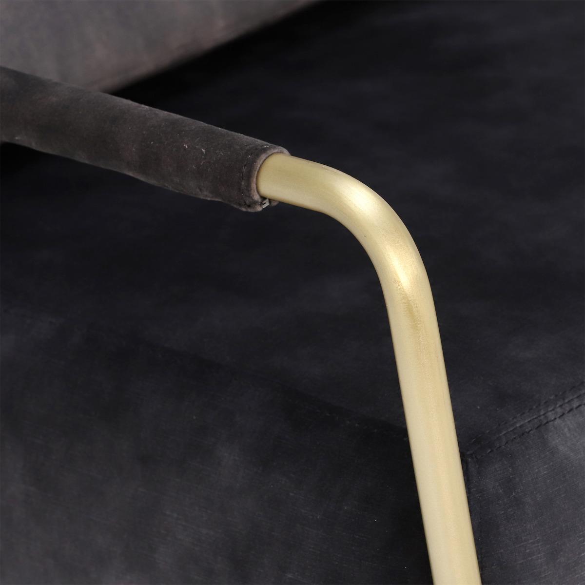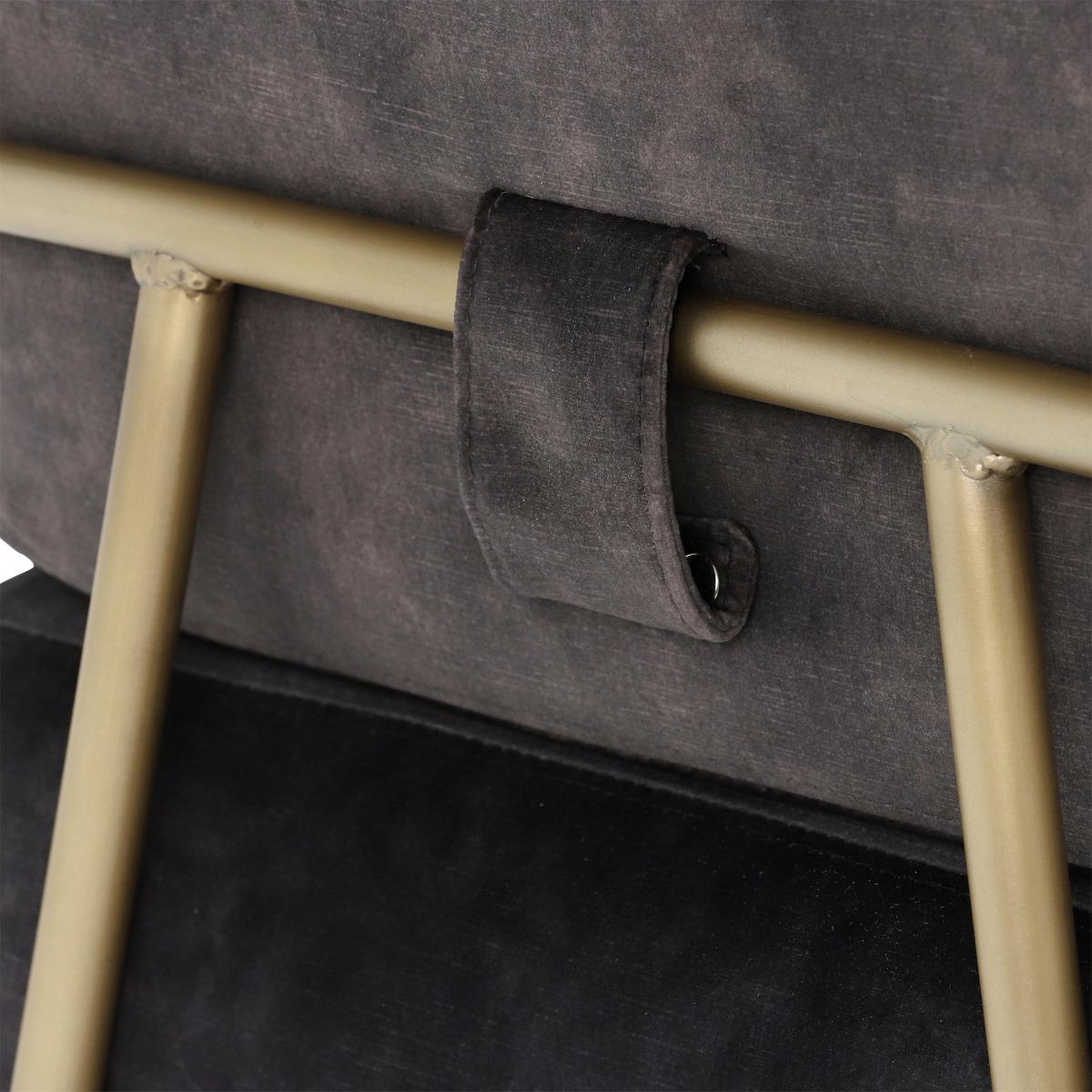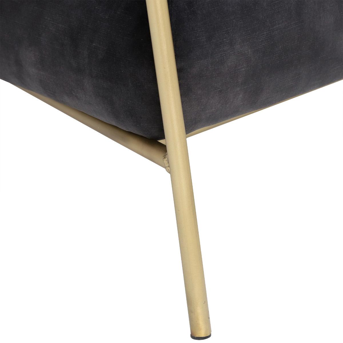 Featuring a contemporary combination of grey-black velvet upholstery and brass, the Fraser club chair is incredibly on-trend. Supremely comfortable, it boasts a generously deep seat with foam-filled cushions that retain their shape well. The armchairs slim metal frame is exposed for a dose of modern style, lending a light and open look that will enhance any living space. In the lounge, bedroom, hallway or study, this stunning velvet chair is sure to become a family favourite. Shown in Lovely Coal Velvet with an Antique Brass frame.