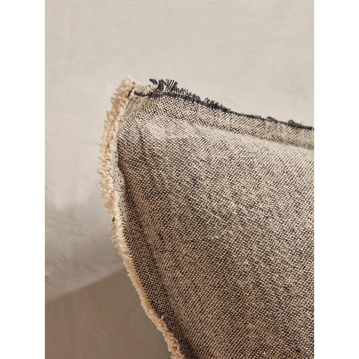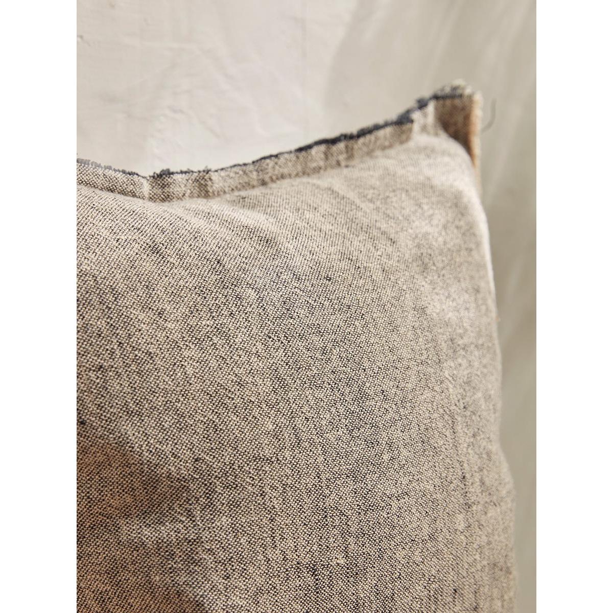 The unfinished border on this cushion gives a wonderful raw energy that sits well in homes where rustic or industrial styling is celebrated.  A weave of contrasting dark and light threads gives the cotton linen mix fabric a slate grey sheen that will tone with a host of other hues.  A matching throw is also available.