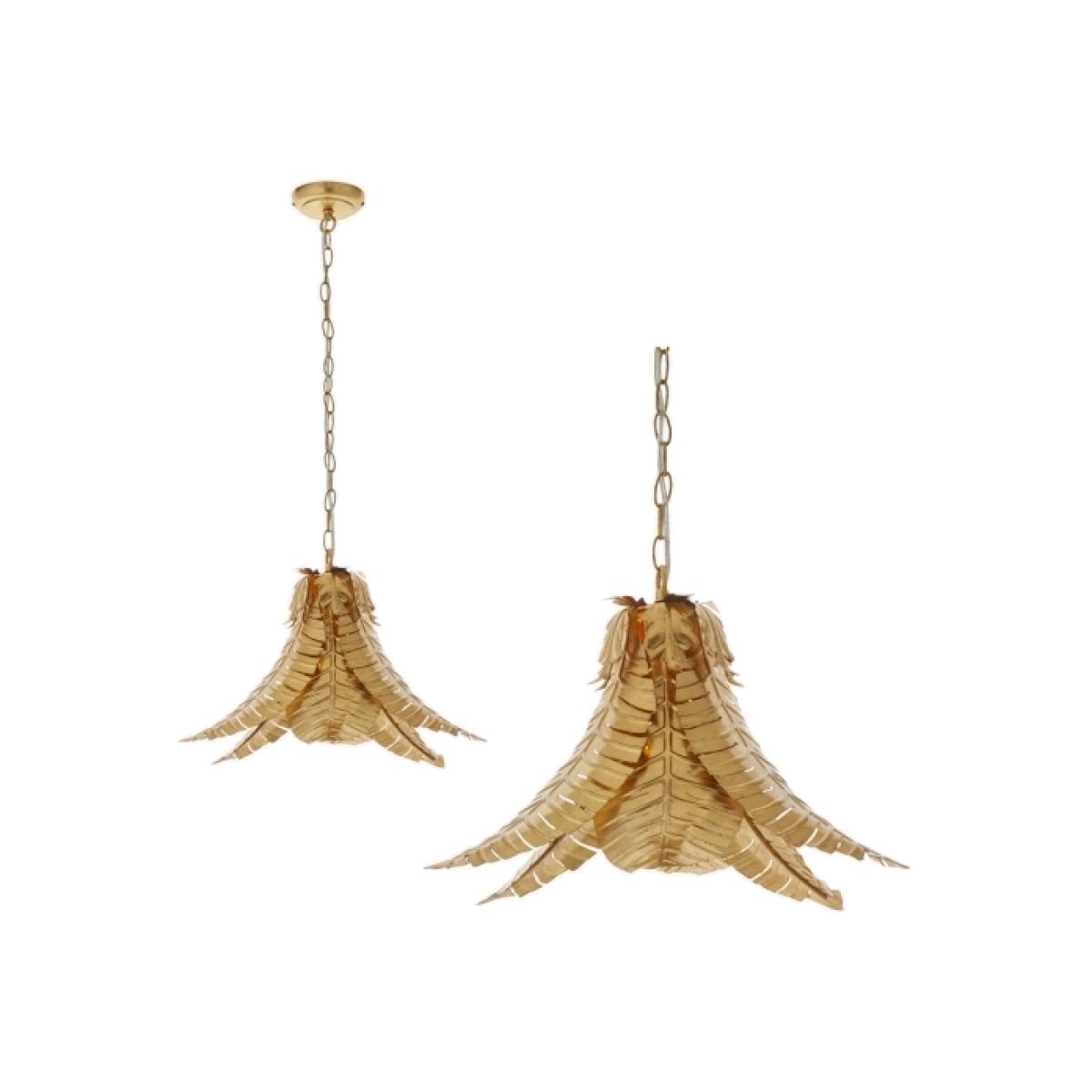 Add an exotic botanical feel to your living room or bedroom area, with the Freda pendant. Note the palm leaf design and the distressed gold finish - the Freda will transport you to paradise while you bask in its glow.