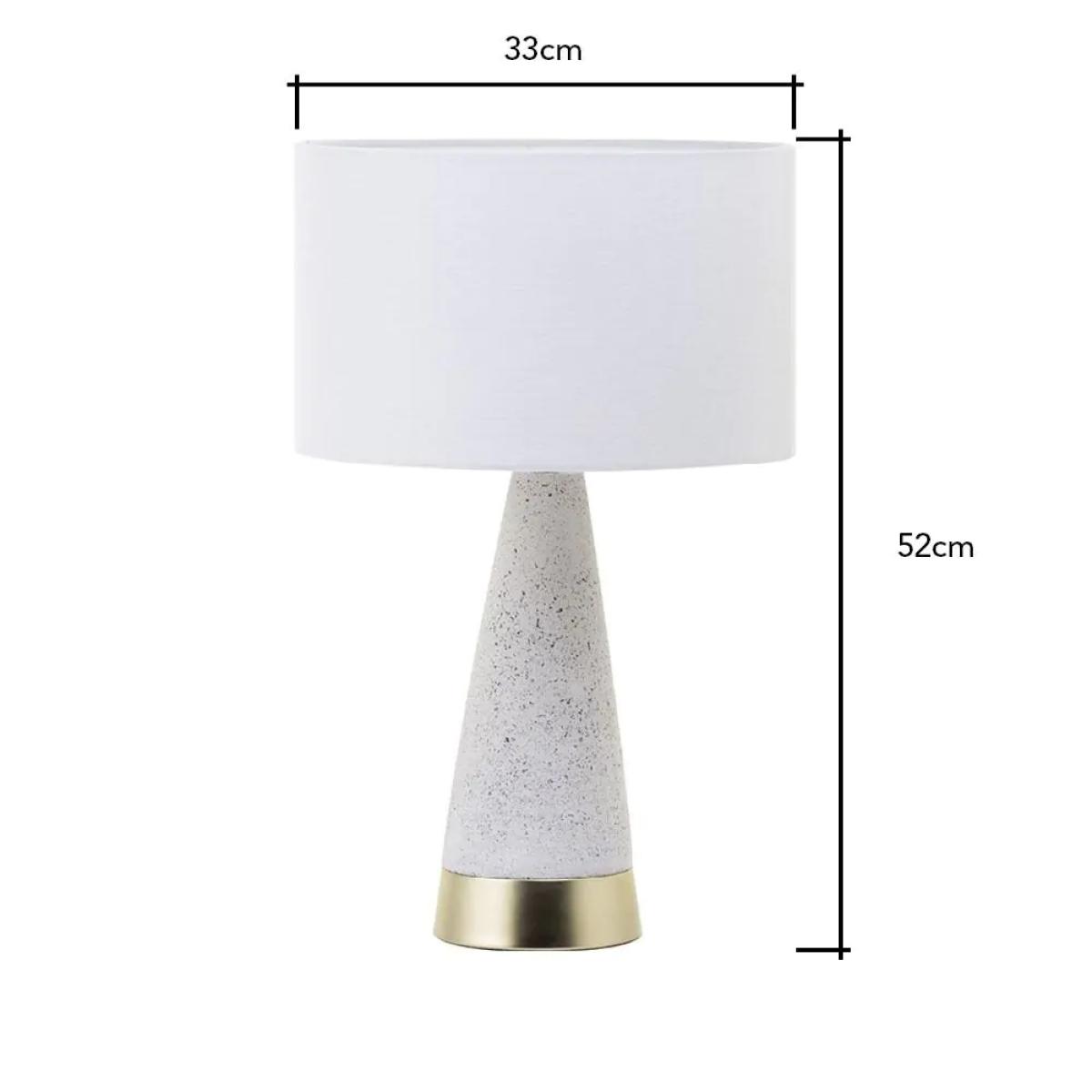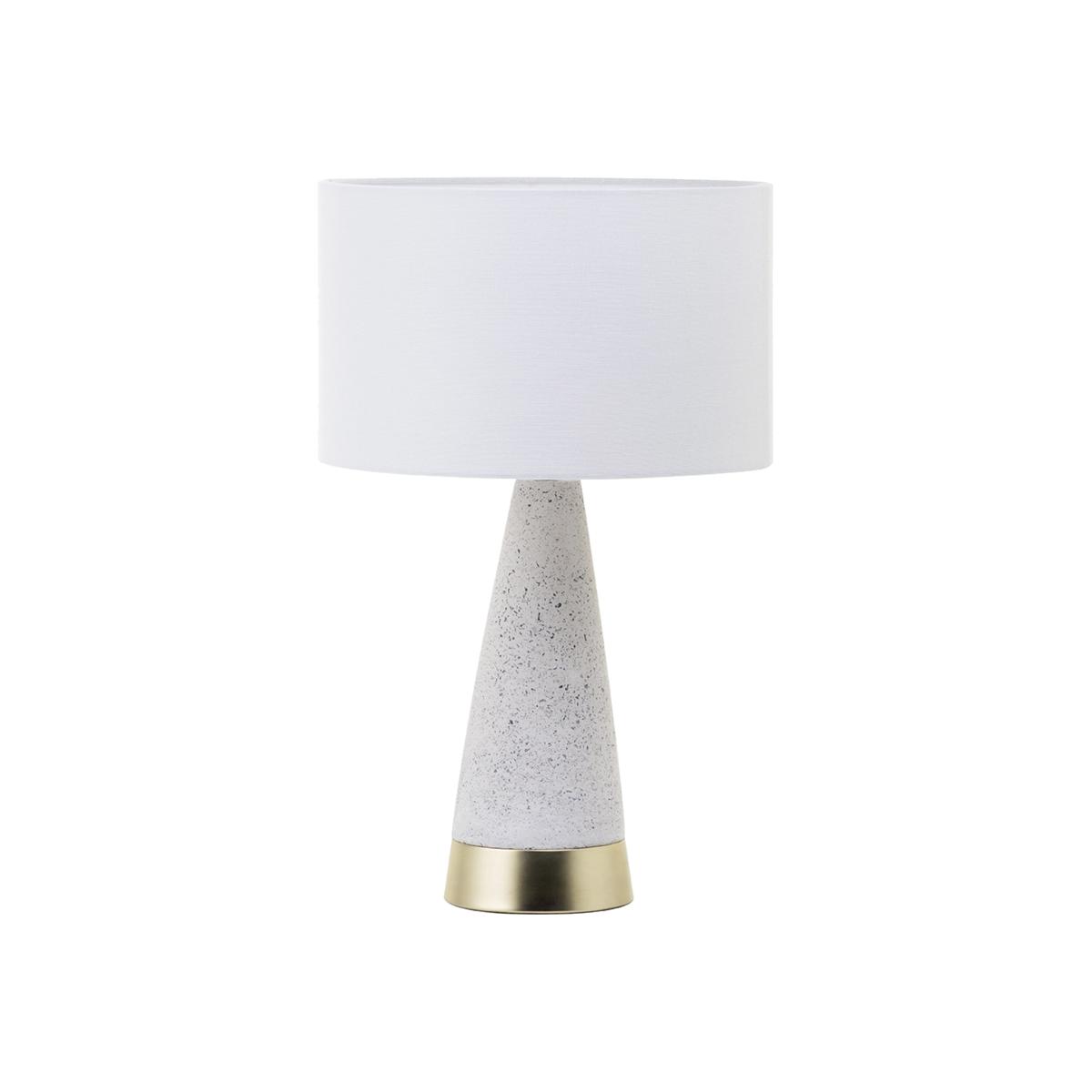 Our Freda table lamp is a conical shaped lamp and has a textured terrazzo design that is perfect for any modern décor. The textured design works well in contrast against the smooth feel and crisp linear style of the brass accents. Topped with a white linen shade, this lamp is sure to give a soft yet practical glow to the interior.