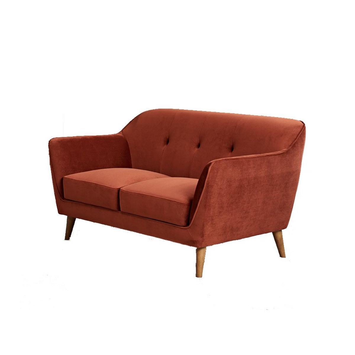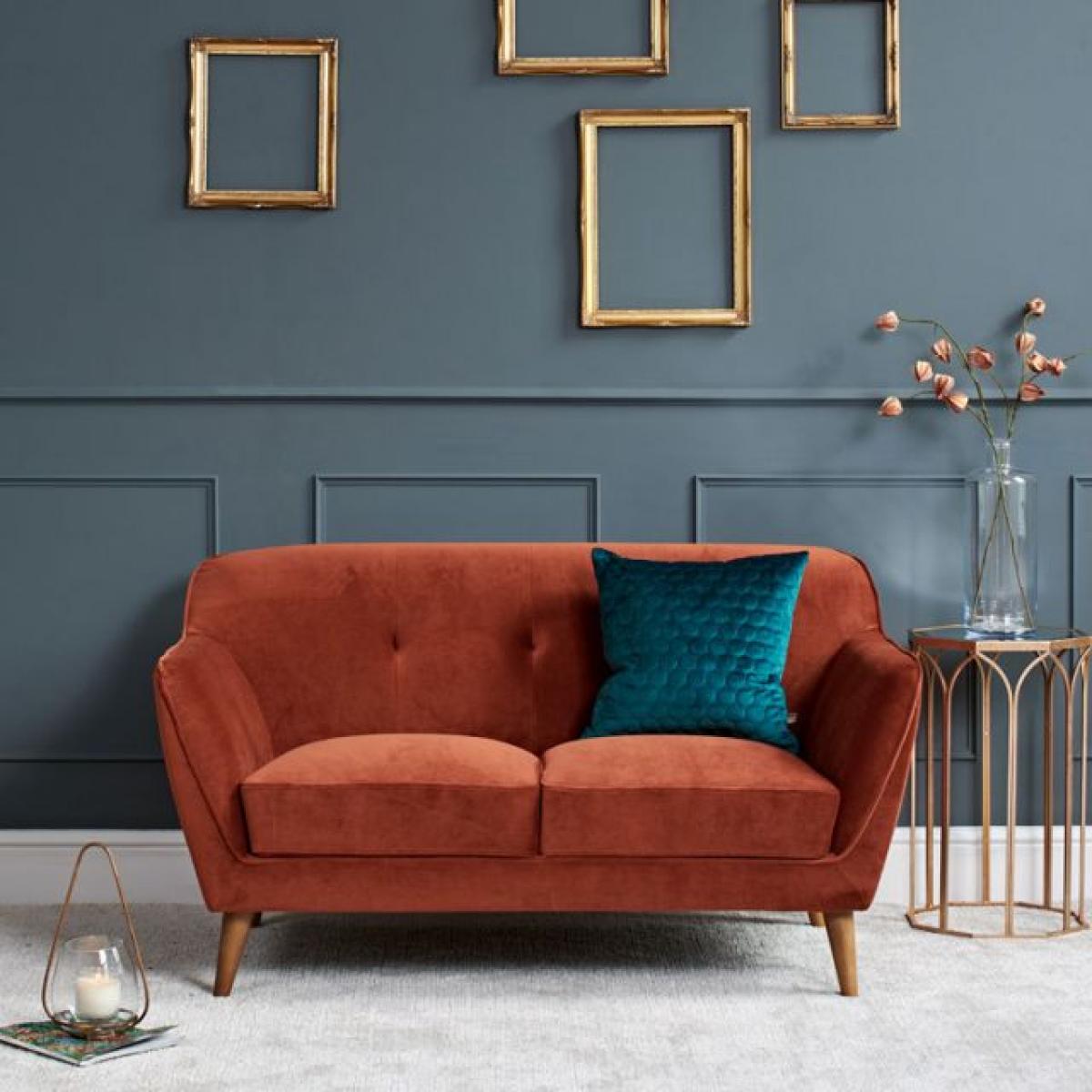 The Freddie 2 seater sofa will be your new favourite place to sit with its warm and inviting, deep orange, velvet upholstered finish adding to your overall comfort. The curved corner design of the sofas back and wide arm rests give it a retro inspired appearance that complements the volumptuous seat cushions perfectly. Available in a whole rainbow of colours for you to choose from.