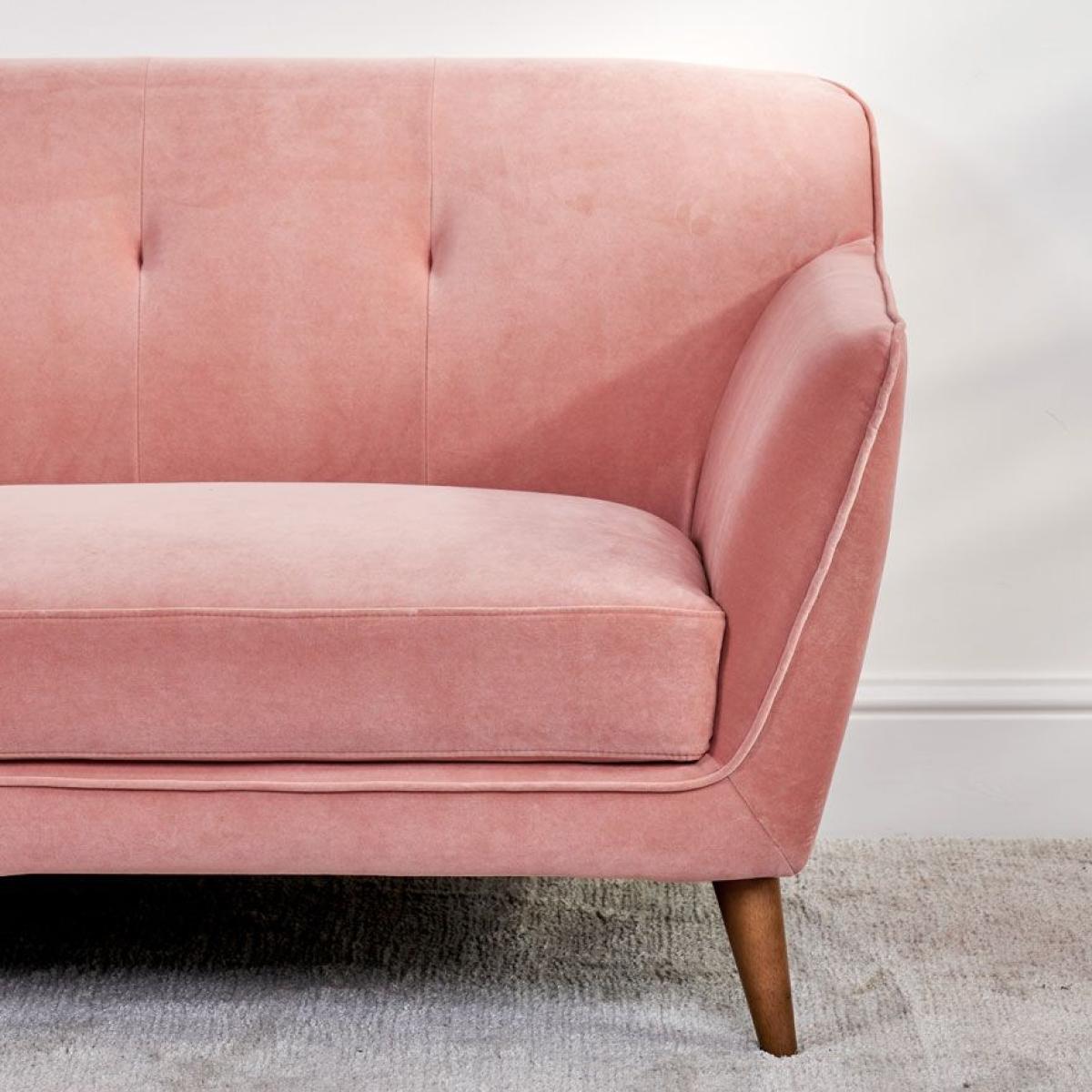 Bring a touch of retro chic into your living room with the Freddie 2 seater sofa, upholstered in a soft dusty pink coloured velvet with oblique wooden legs bringing the look together. Available in a variety of different colours for you to choose from and as a 3 seater and armchair to complete the set.