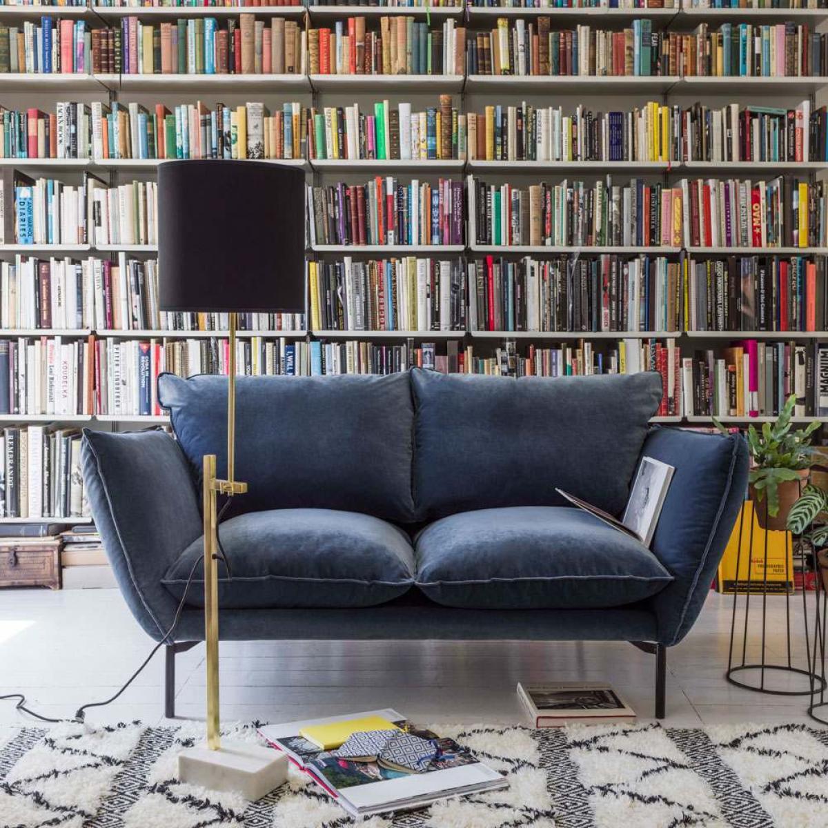 Freddie is the king of squishy comfort. Generously filled with foam and feathers, this contemporary design has a nod to stylish retro influences. The deep seat is supported by a tall back and angled arms, and the look is completed with sleek black metal legs. The perfect sofa to curl up in.  Available in a range of sumptuous fabrics, you can tailor the Freddie to complement any interior space. Pictured: 2 seater sofa in Navy Blue Classic Velvet. Handmade in 8-10 weeks and then delivered usually within 10 working days.
