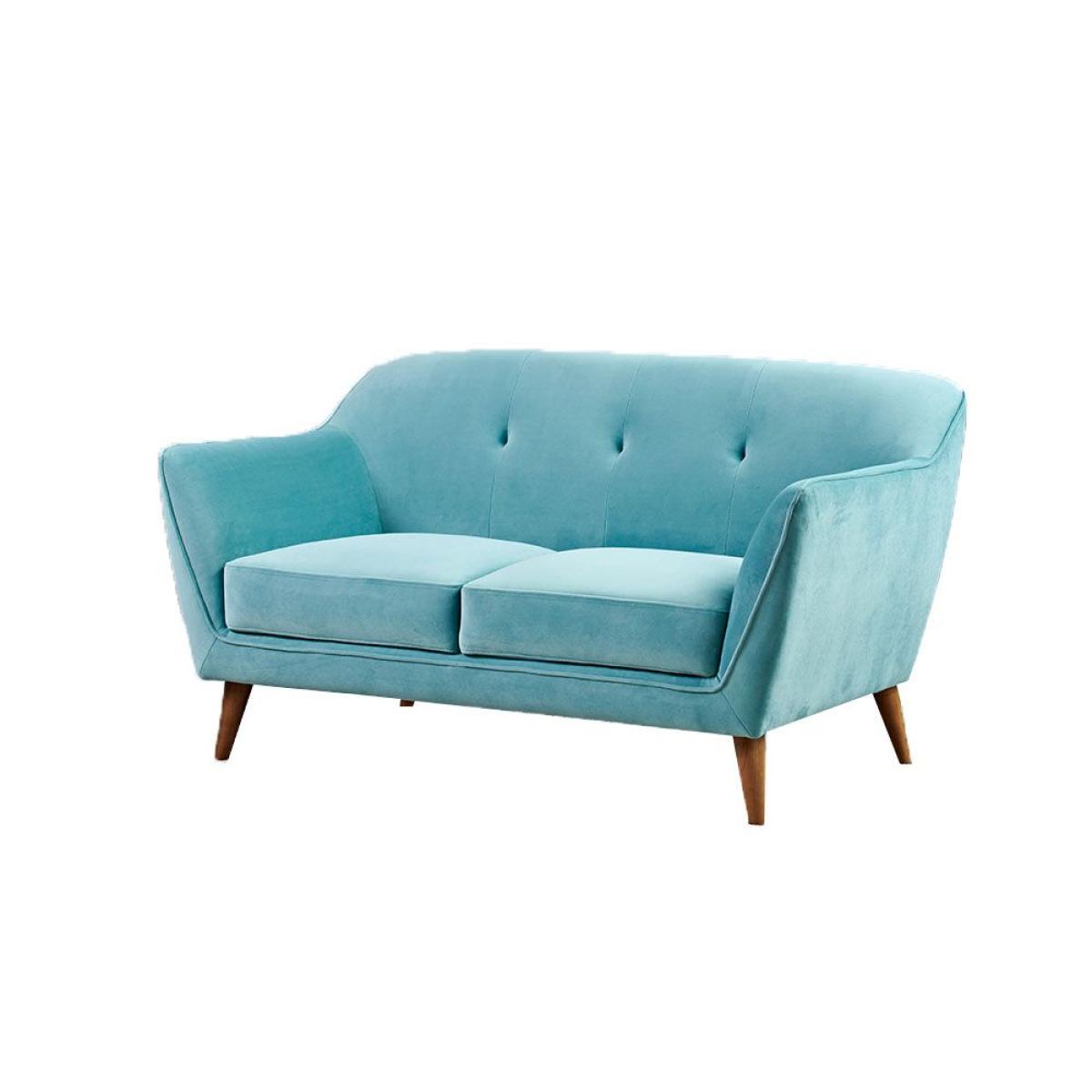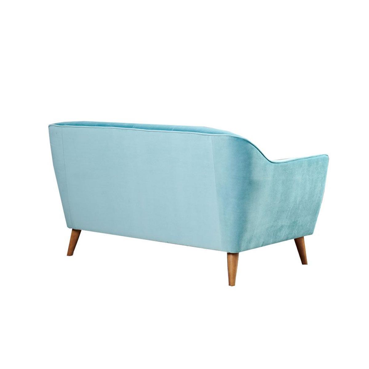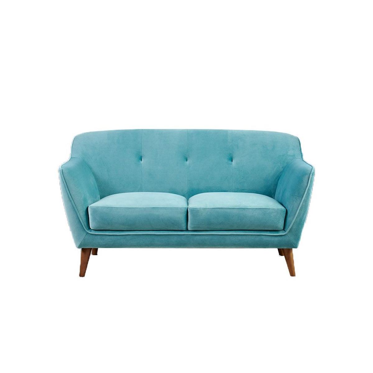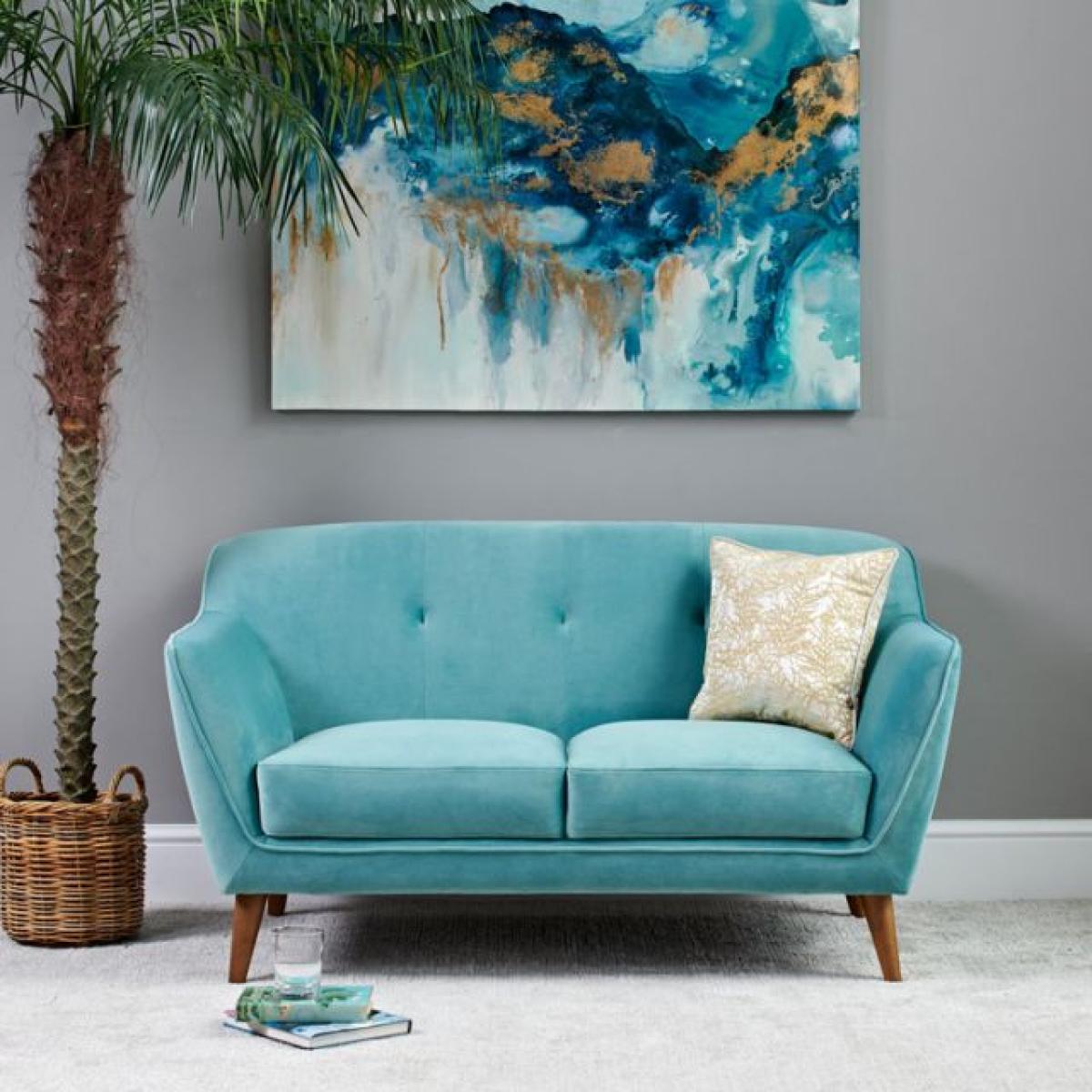 The Freddie 2 seater sofa features a beautiful, plush sky blue velvet upholstered finish with oblique wooden legs. See as the curved corners of the sofas back, deep buttoned detailing and angled arms come together to form a simple, retro inspired design. Choose from a whole rainbow of colours that are sure to brighten up your home, also available as a 3 seater sofa and armchair. W140cm x D86cm x H78cm - Seat Height 40cm, Seat Depth 59cm. Swatch available on request. Simple self assembly