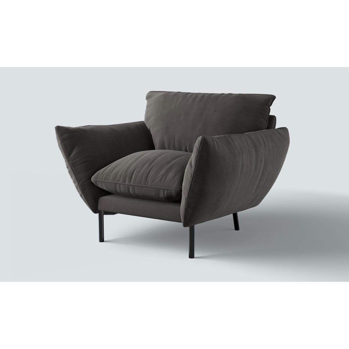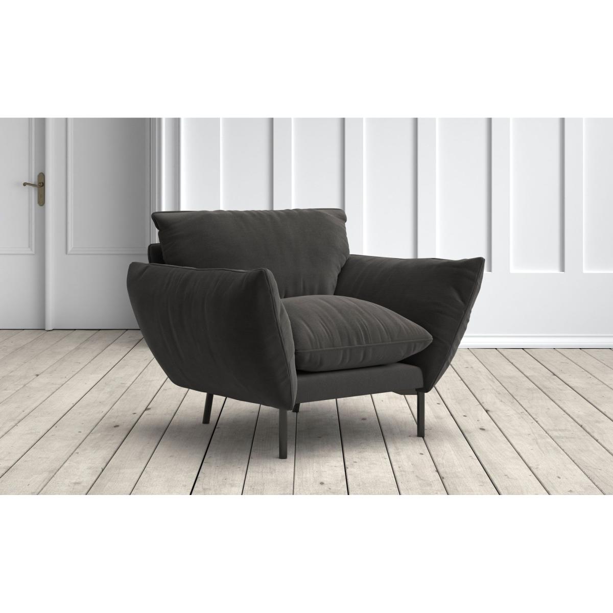 Freddie is the king of squishy comfort. Generously filled with foam and feathers, this contemporary design has a nod to stylish retro influences. The deep seat is supported by a tall back and angled arms, and the look is completed with sleek black metal legs. The perfect sofa to curl up in.  Available in a range of sumptuous fabrics, you can tailor the Freddie to complement any interior space. Pictured: 2 seater sofa in Navy Blue Classic Velvet. Handmade in 8-10 weeks and then delivered usually within 10 working days.