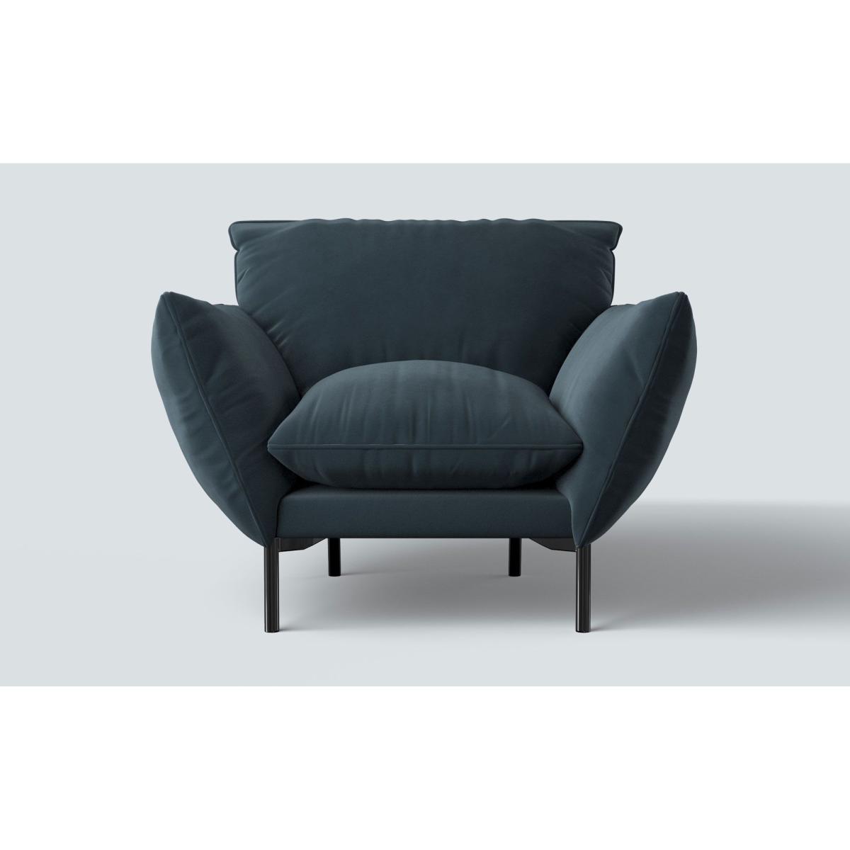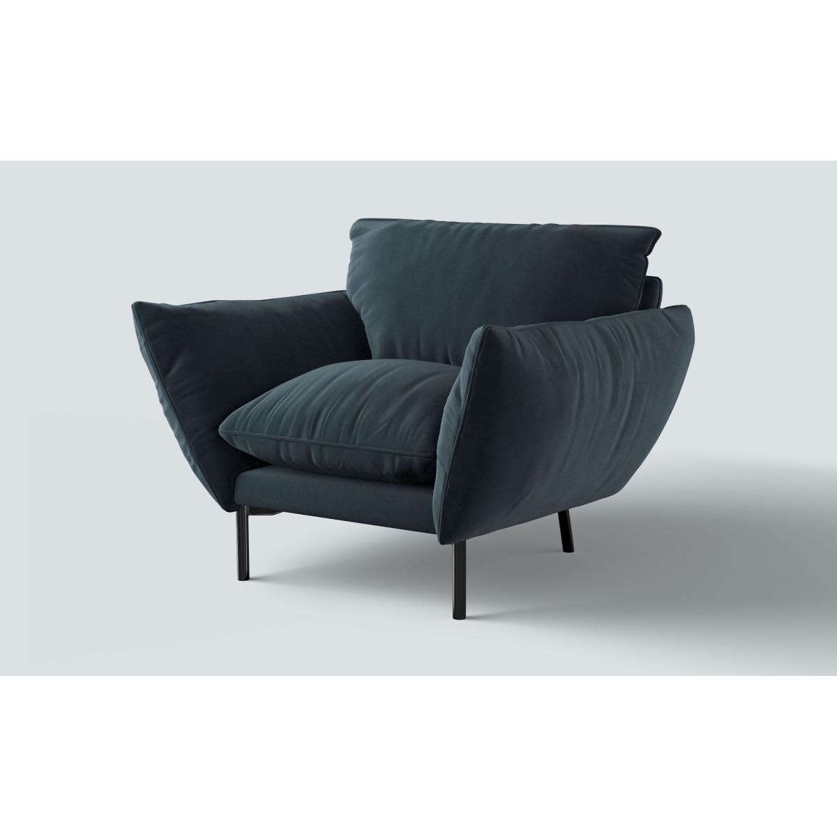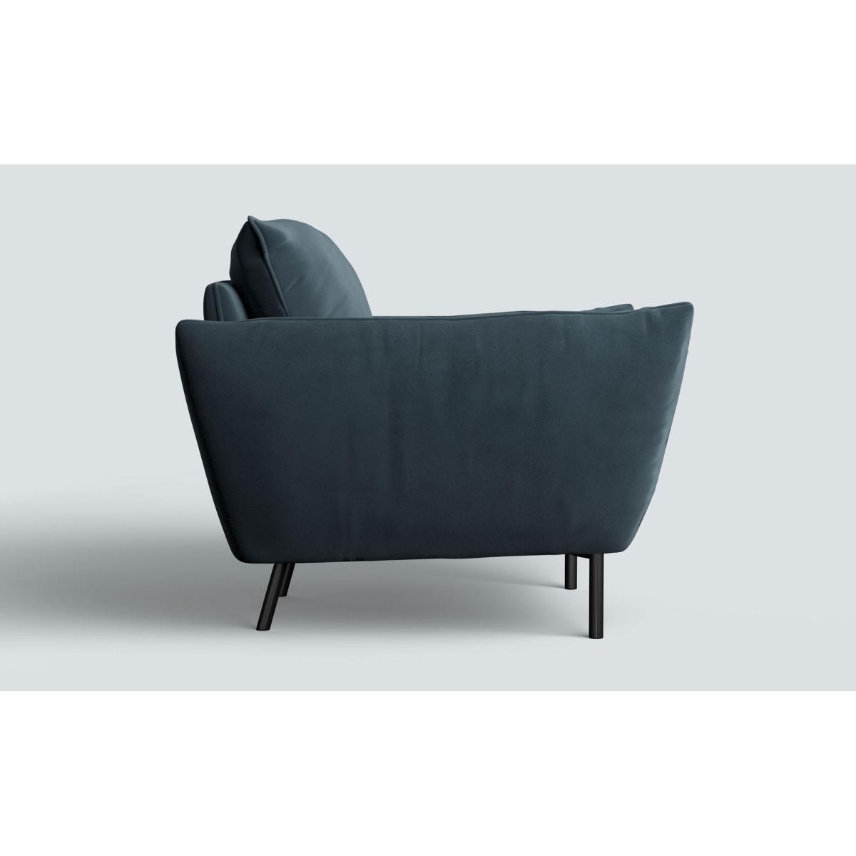 Freddie is the king of squishy comfort. Generously filled with foam and feathers, this contemporary design has a nod to stylish retro influences. The deep seat is supported by a tall back and angled arms, and the look is completed with sleek black metal legs. The perfect sofa to curl up in.  Available in a range of sumptuous fabrics, you can tailor the Freddie to complement any interior space. Pictured: 2 seater sofa in Navy Blue Classic Velvet. Handmade in 8-10 weeks and then delivered usually within 10 working days.
