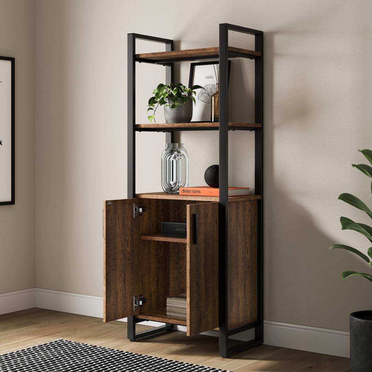 Add a touch of industrial style to your living space with the Freddie Bookcase. Featuring a sturdy steel bottom frame, 3 display shelves, and a roomy storage cupboard, this versatile piece can be used in the living room, kitchen, study, or hallway. Assembly is easy with illustrated instructions and all the hardware provided.