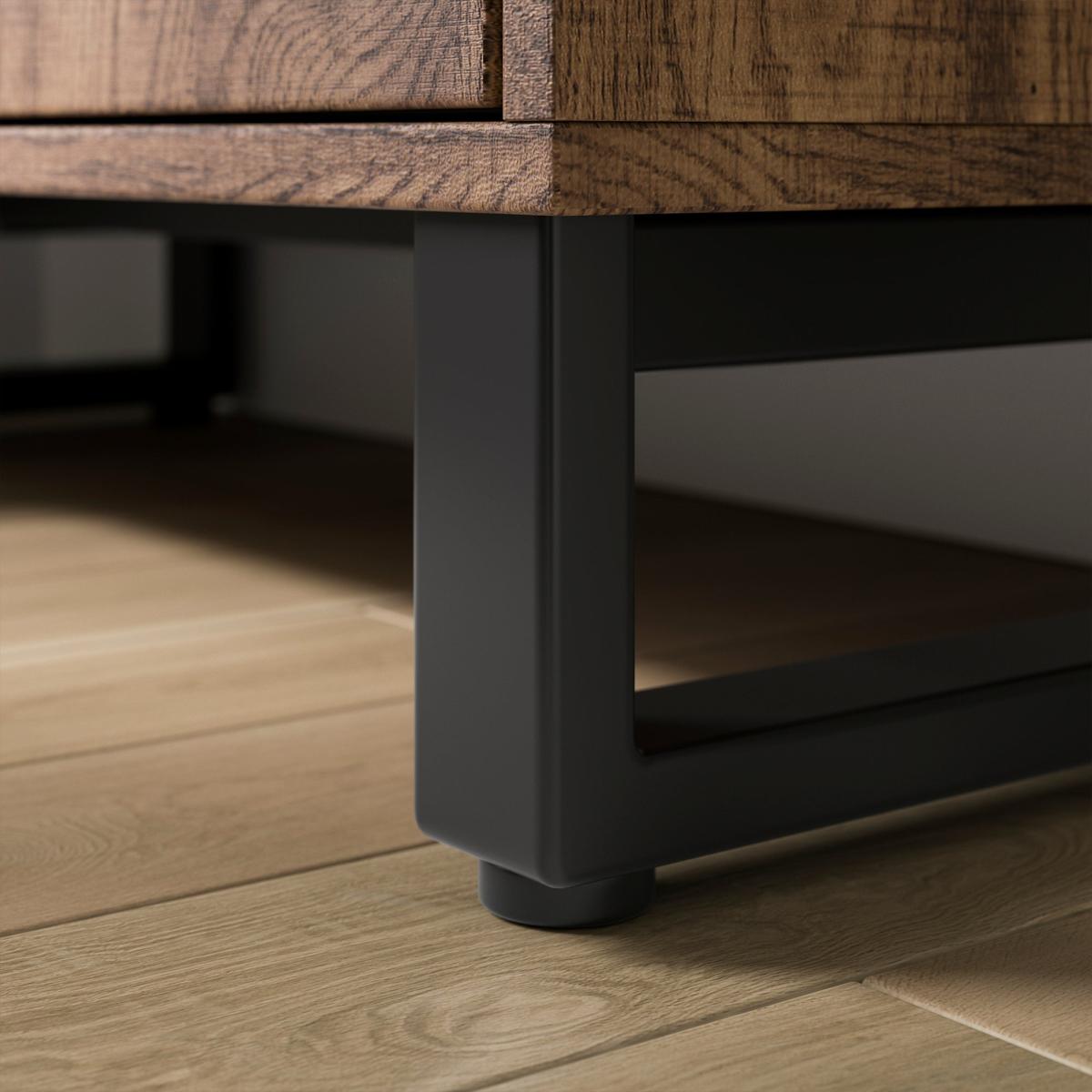 * Industrial style* Steel frame* 2 Display shelves Featuring a sturdy steel bottom frame, this versatile piece is designed for both style and functionality. It includes two display shelves and a roomy storage cupboard, making it perfect for use in the living room, kitchen, study, or hallway. For a cohesive look throughout your home, explore the full Freddie living range, which includes sideboards, a TV unit, a study desk, and a large bookcase.