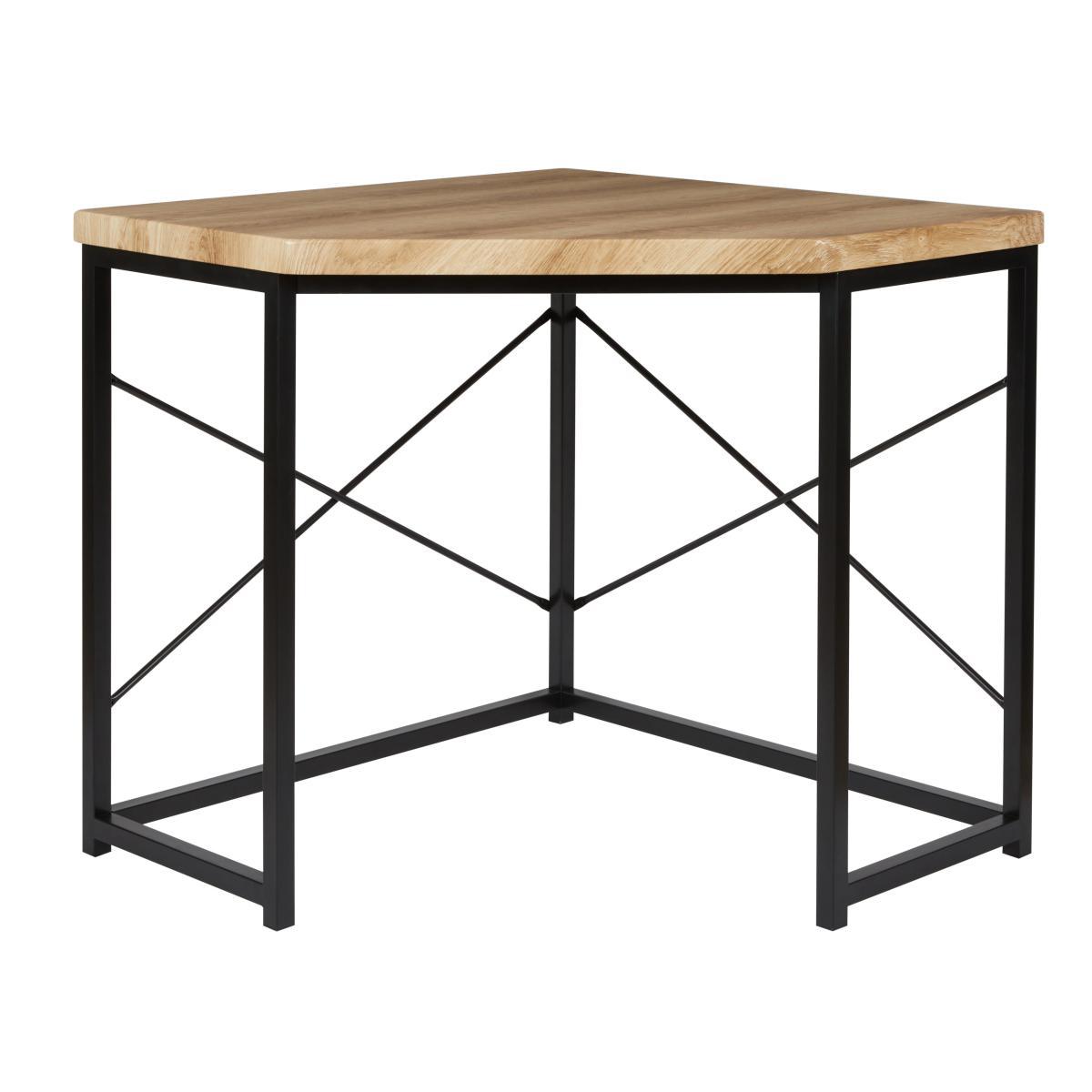 Dunelm Exclusive - Designed and Developed by Dunelm. Designed to fit perfectly in any corner space, the Freddie Oak Effect Corner Desk will make a wonderful addition to any office, bedroom or living space. Crafted with an oak effect work top and complemented with a black metal frame. This stylish corner desk offers ample working space and is supplied part assembled for added convenience. With its simple lines and oak effect style, the Freddie corner desk is sure to add a touch of modern style to any space.