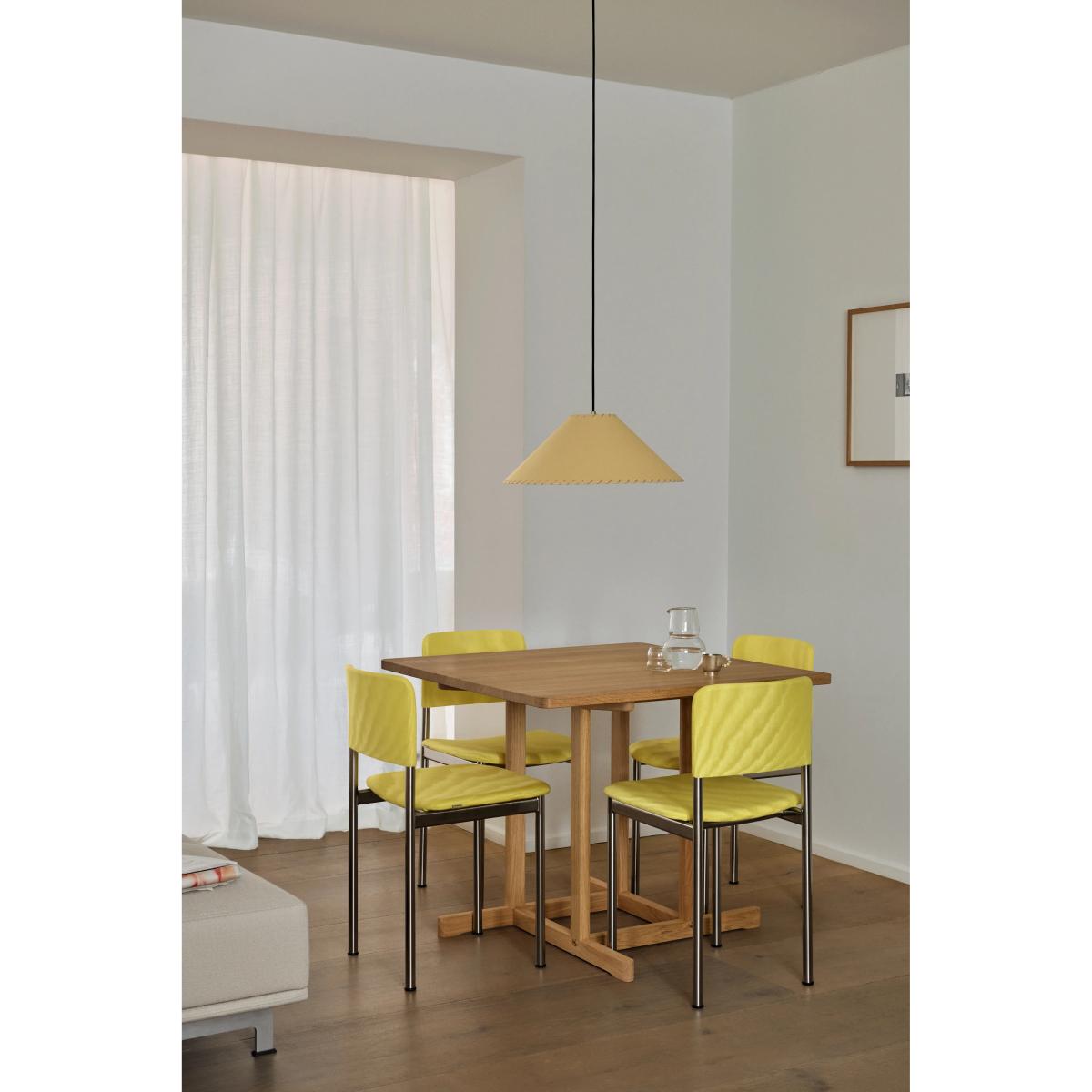 I love this table for its clean, timeless design that works seamlessly in both modern and Scandinavian-inspired interiors. Its light oiled oak finish adds warmth without overwhelming the space, making it versatile for a variety of colour palettes. The compact 90x90cm size is ideal for smaller dining areas or as a multipurpose surface in open-plan kitchens. For styling, pair it with simple, understated chairs or mix with different textures like fabric or leather for added interest. It's equally practical as a breakfast table or a flexible workspace, and its sturdy construction ensures durability while maintaining an elegant minimal profile.