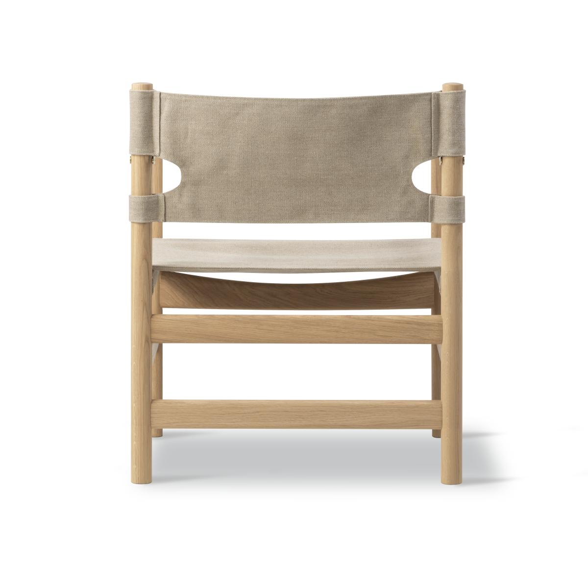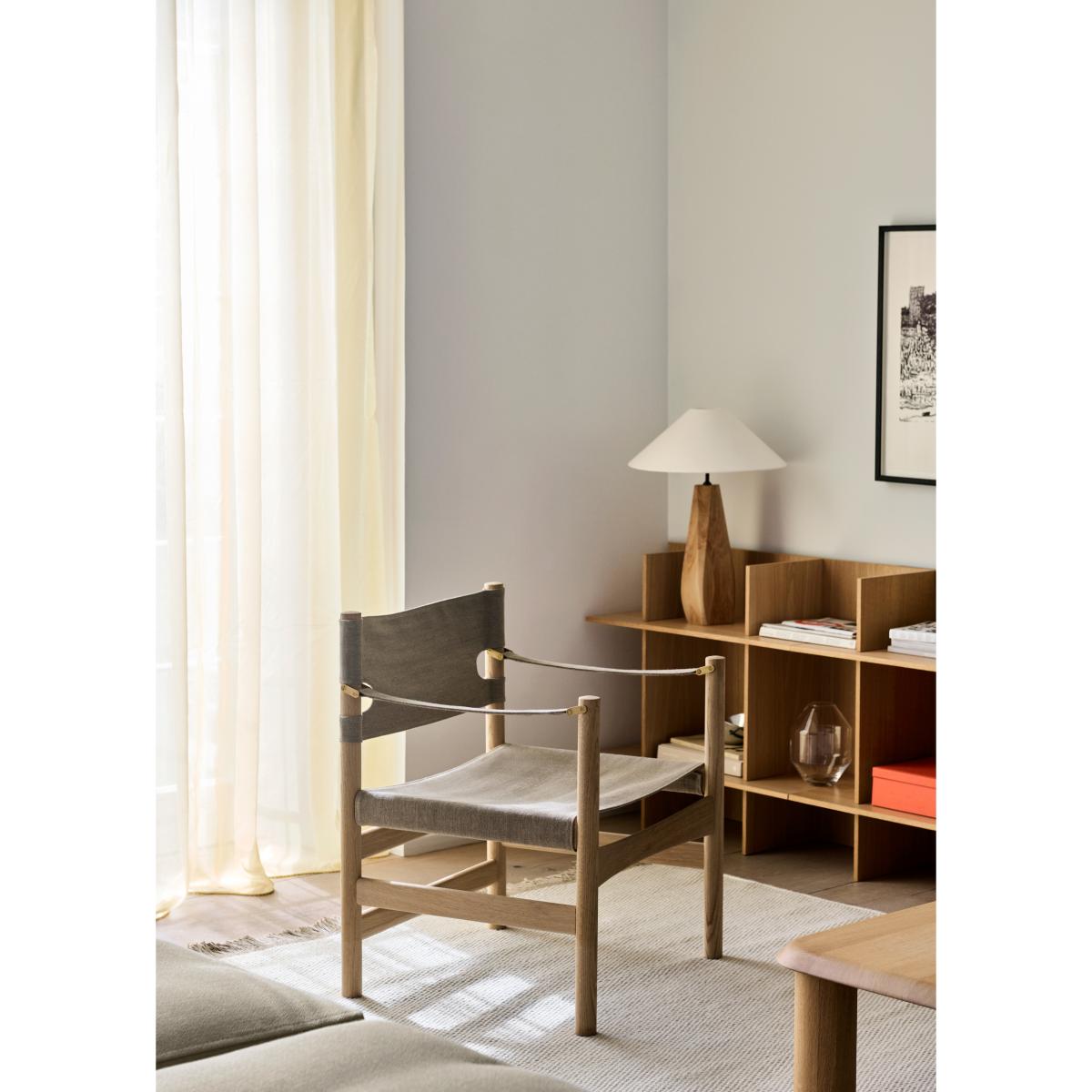Canvas 21 armchair by Fredericia Furniture, designed by Børge Mogensen, has a simple and honest construction. The chair is made from FSC-certified solid wood with tactile canvas and elegant brass details. These details develop a sophisticated patina over time. Its clean lines make it a versatile classic that blends into any room.