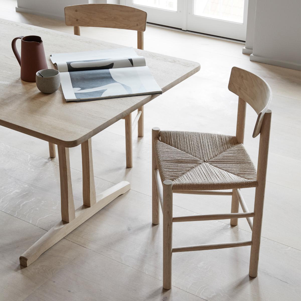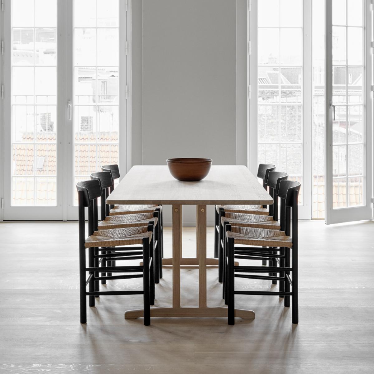 The J39 chair from Fredericia Furniture is an iconic dining chair in solid wood designed by Børge Mogensen in 1947. The timeless design combines simplicity, durability and excellent sitting comfort, making the J39 perfect as a dining chair, kitchen chair or desk chair at home. The chair is crafted with genuine workmanship and clean lines that blend into both modern and traditional interiors. With its robust construction and classic shape, the J39 is a sustainable choice for long-term use. This classic of Danish furniture design brings style, comfort and lasting quality to your home for generations.