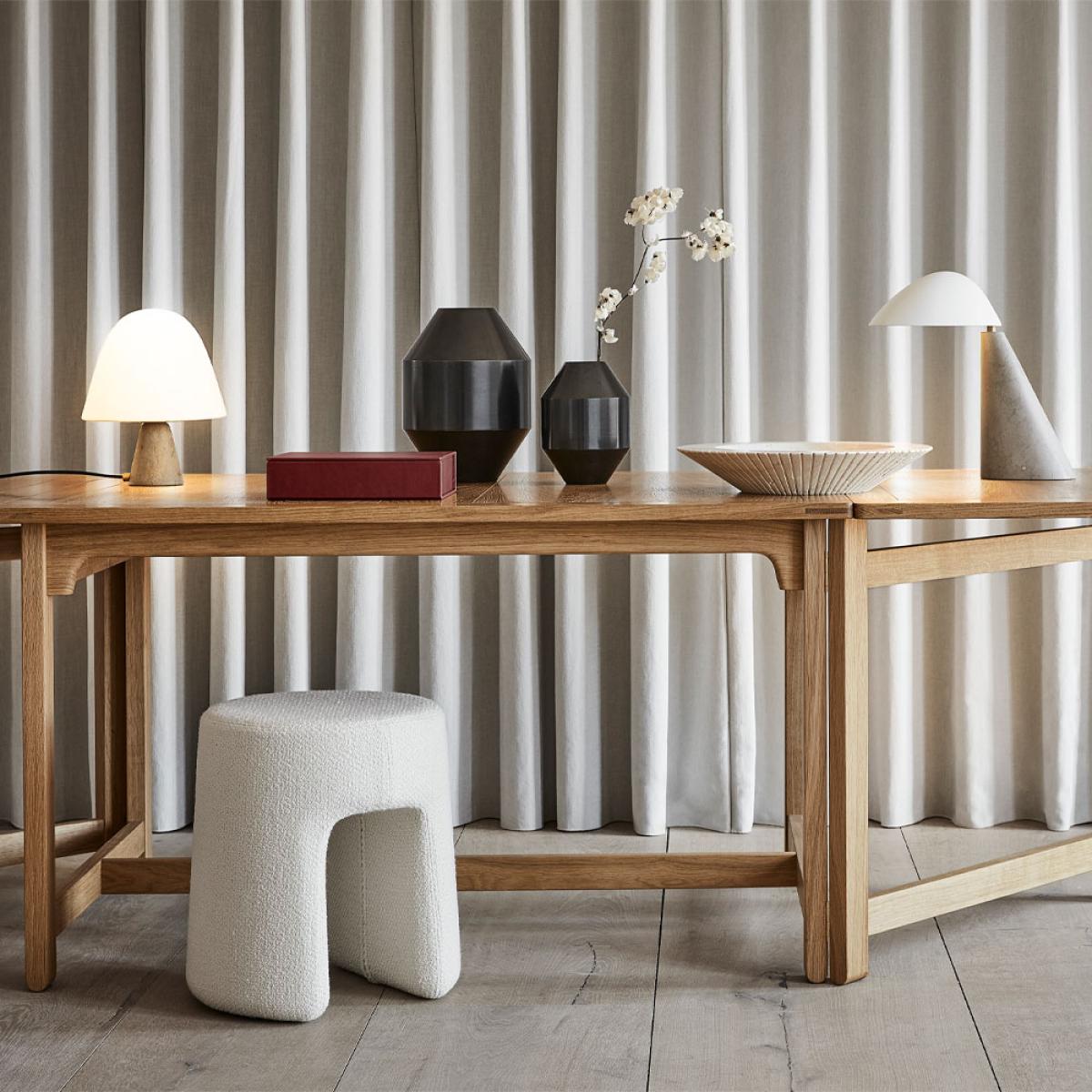 Sequoia ottoman from Fredericia Furniture is a compact and versatile ottoman inspired by the iconic American Sequoia tree. Designed by Space Copenhagen, it combines sculptural aesthetics with functional design, making it easy to place in various rooms. The ottoman works as extra seating, a footrest, or a decorative element in the home, and thanks to its mobility you can easily move it where it’s needed. Sequoia ottoman’s clean lines and well-proportioned design make it a stylish and practical addition to the living room, lounge, or bedroom.